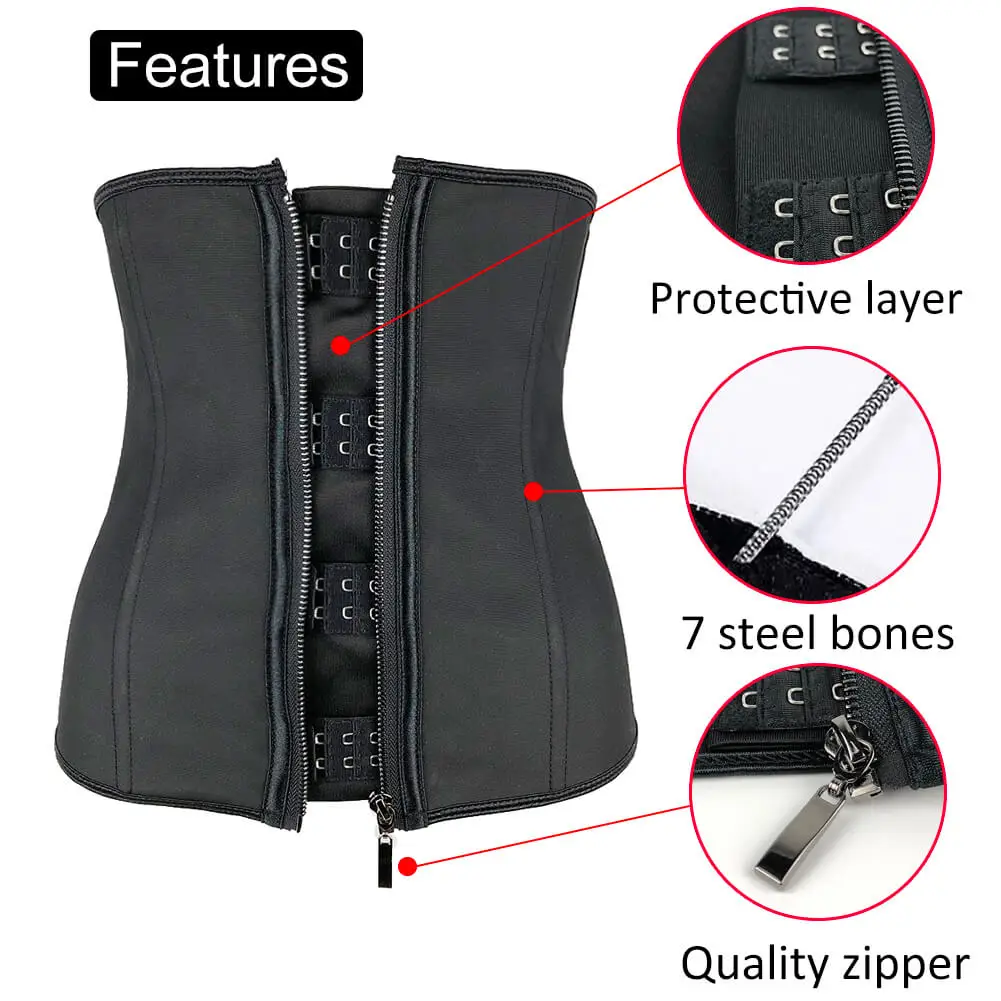Женский латексный тренажер для талии, корсеты для коррекции фигуры с застежкой-молнией, корсет, топ, пояс для похудения, черная модель