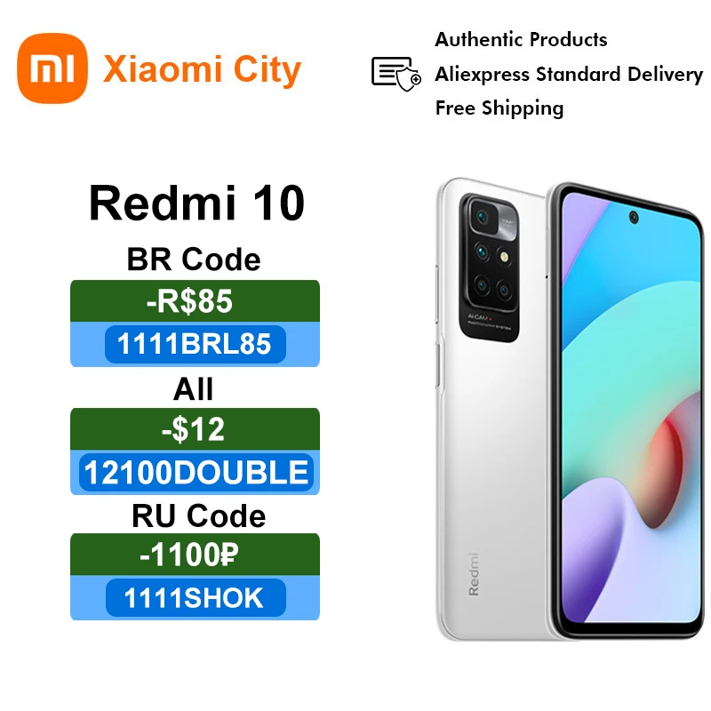 Смартфон Xiaomi Redmi 10 глобальной версии, 4 ГБ6 ГБ 64 Гб128 ГБ, 50 МП, четыре AI-камеры, 90 Гц, FHD + дисплей, аккумулятор 5000 мАч, сотовый телефон