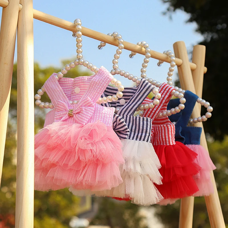 Новинка 2021, розовое платье для собак, универсальное платье для чихуахуа, платье в полоску, юбка, одежда для щенка, кошки, принцессы, одежда, милая одежда для щенка