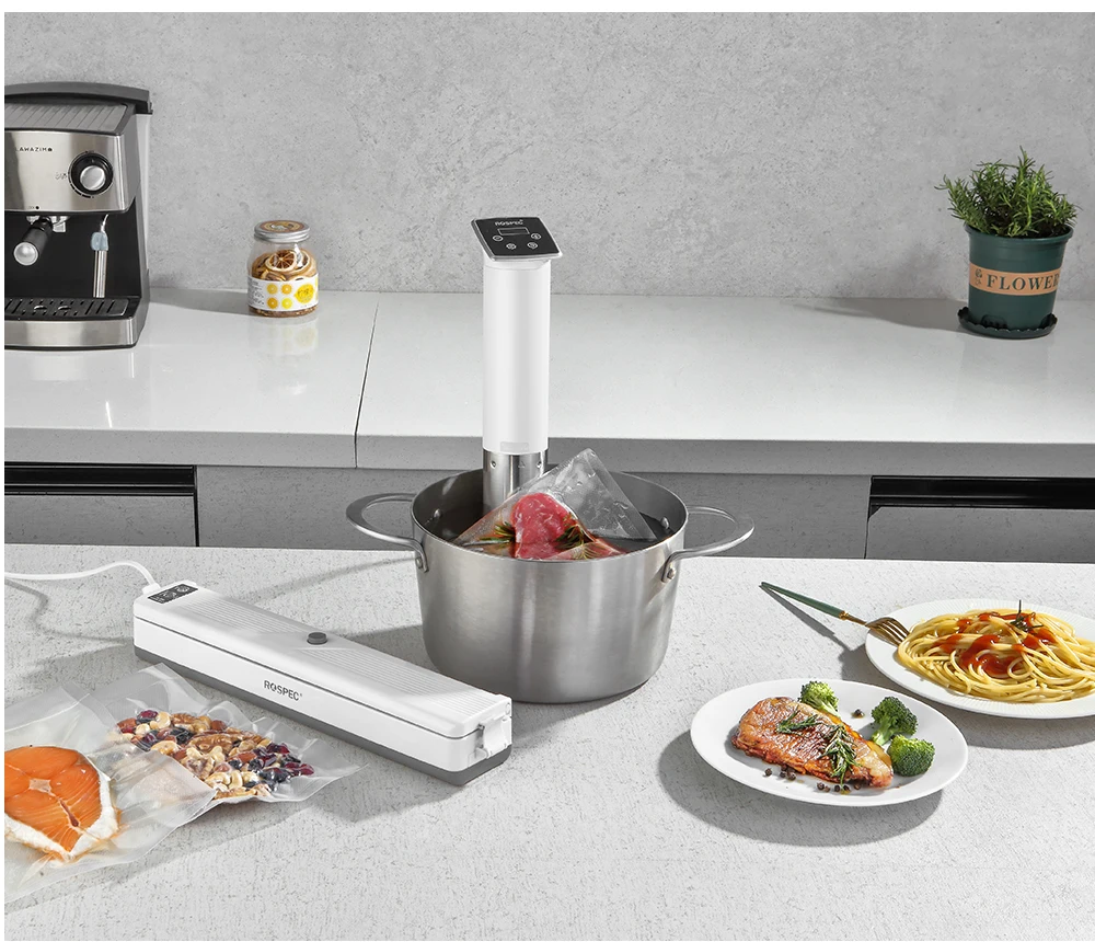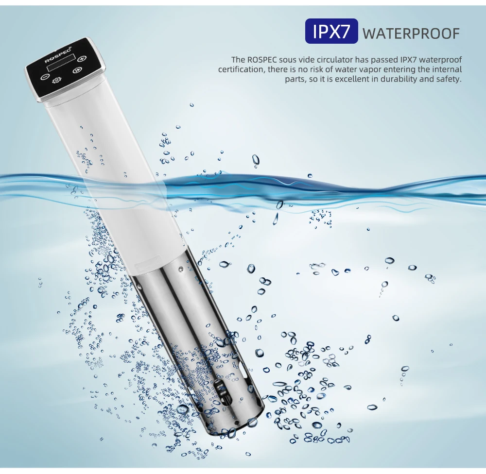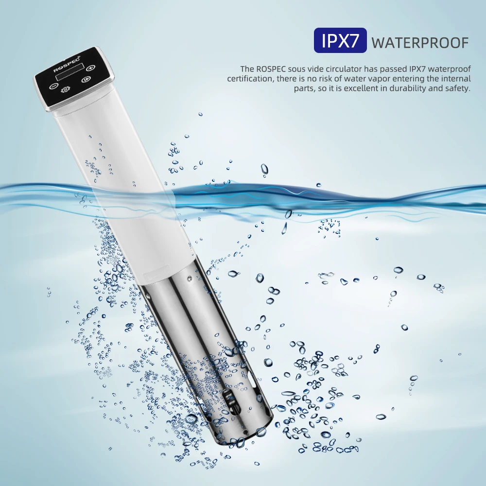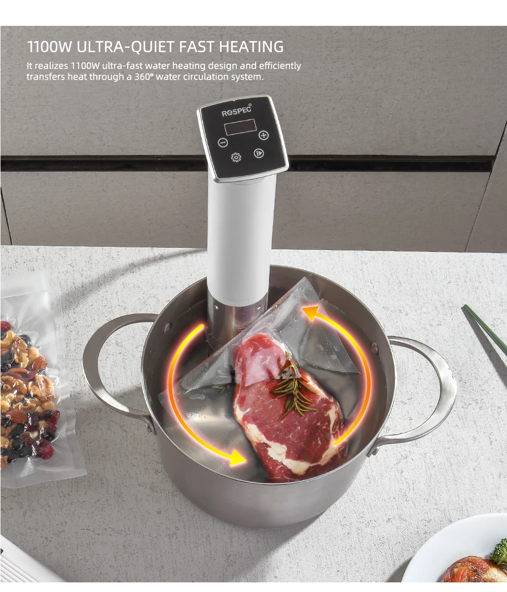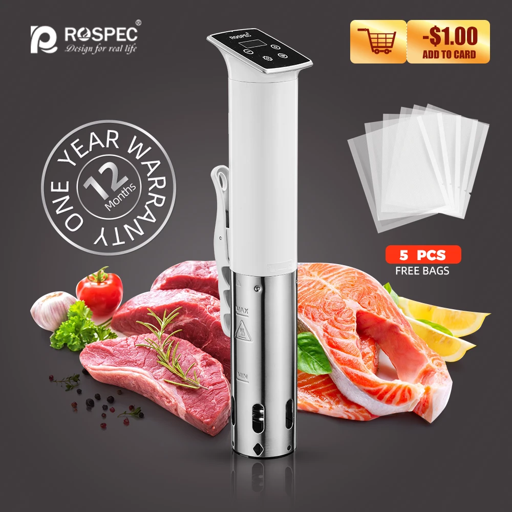 Погружной циркулятор ROSPEC IPX7 для приготовления Су-вид, 1100 Вт, точное приготовление пищи со светодиодным цифровым дисплеем и 5 вакуумными пакетами