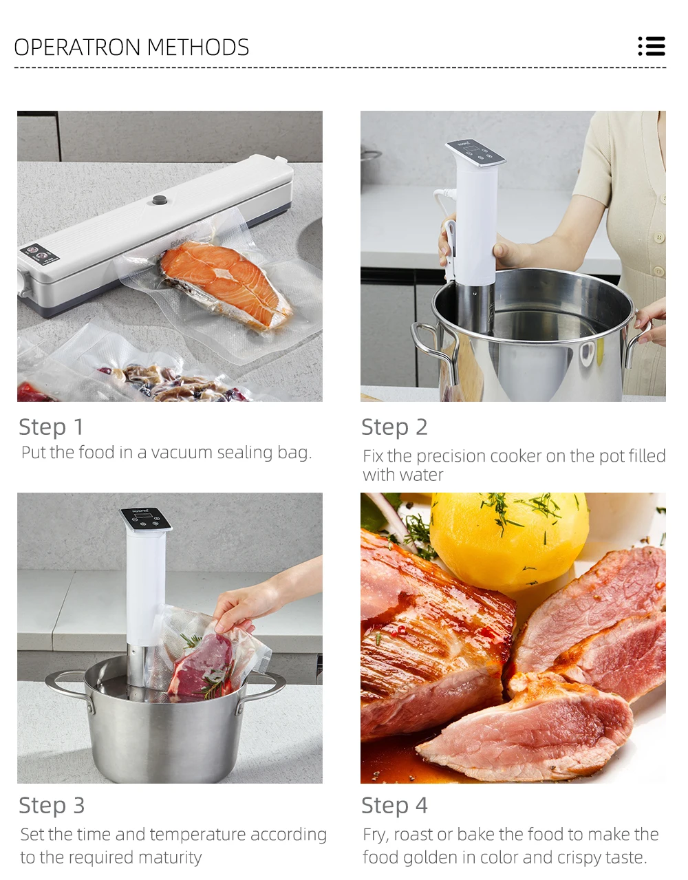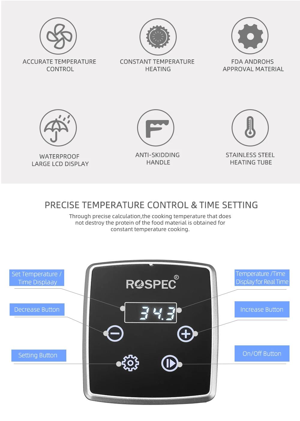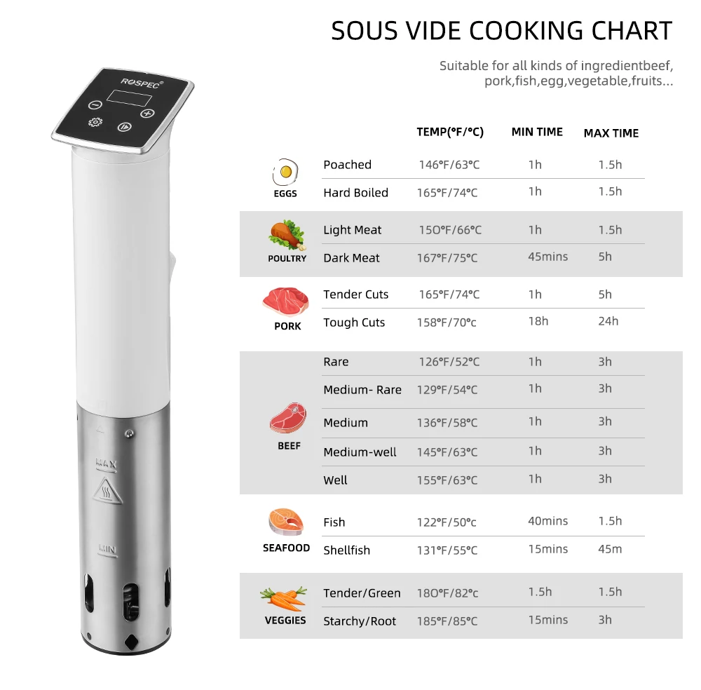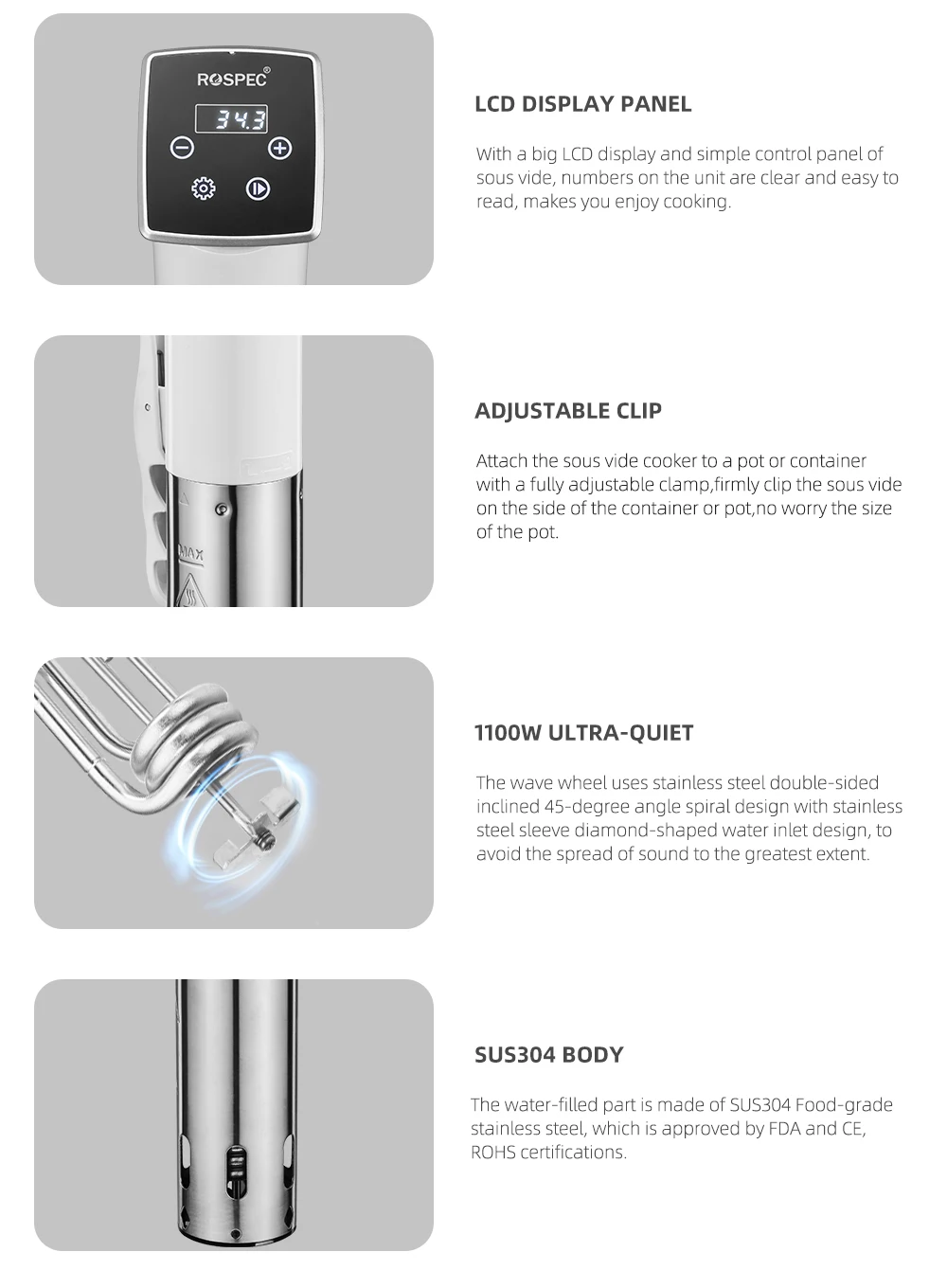 Погружной циркулятор ROSPEC IPX7 для приготовления Су-вид, 1100 Вт, точное приготовление пищи со светодиодным цифровым дисплеем и 5 вакуумными пакетами