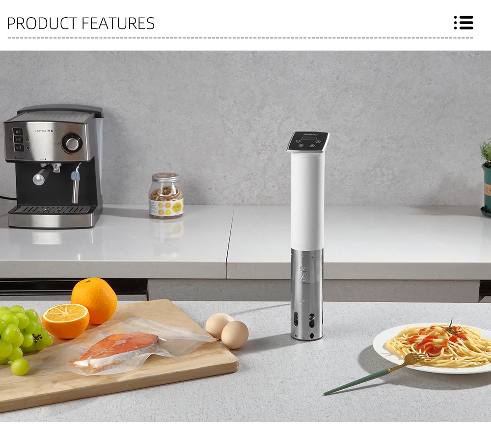 Прибор солидный. Нагревает воду быстро. Буду осваивать технологию приготовления в вакуумных пакетах..