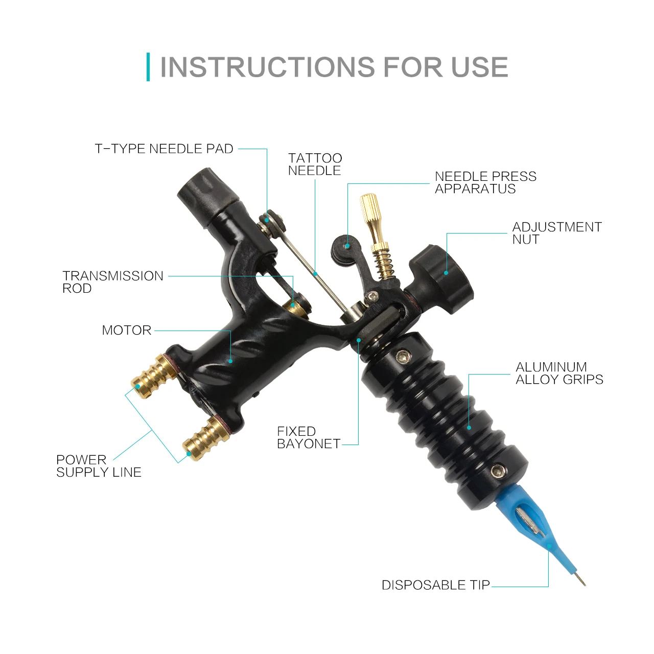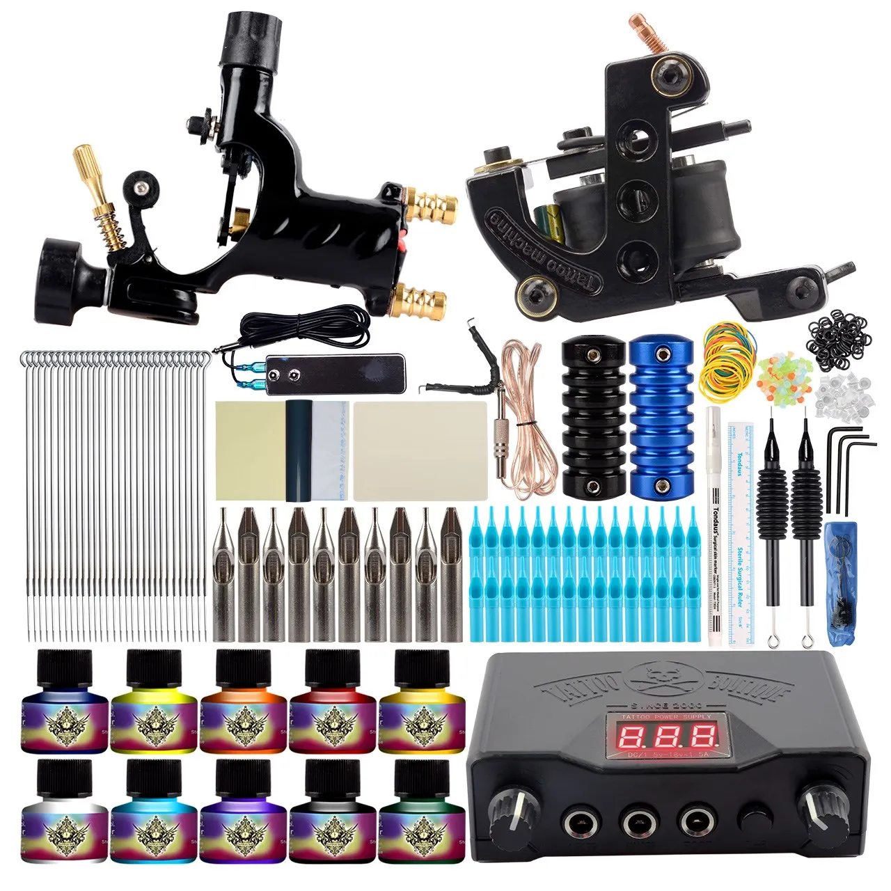 Набор для тату-машинки, источник питания с черными чернилами, Ротационные профессиональные тату-наборы, аксессуары и принадлежности для начинающих