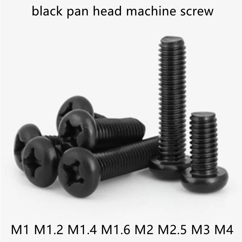 Винт с крестовой головкой GB818, 50-100 шт., М1.2, M1.4, M1.6, M1.7, M2, M2.5, M3, M4, винт с круглой головкой из углеродистой стали, черный