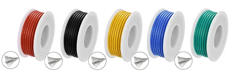 Гибкий силиконовый провод18 AWGТемпература: -60 градусов до 200 градусов-Диаметр каждого медной проволоки: 0,08 ммЯдро: 150 нитей (0,75 квадратных миллиметров)Наружный диаметр: 2,3 ммГибкий силиконовый провод20 AWGТемпература: -60 градусов до 200 градусов-Диаметр каждого медной проволоки: 0,08 ммЯдро: 100 нитей (0,5 квадратных миллиметров)Внешний диаметр: 1,80 ммГибкий силиконовый провод22 AWGТемпература: -60 градусов до 200 градусов-Диаметр каждого медной проволоки: 0,08 ммЗерна: 60 нитей (0,3 mm2)Внешний диаметр: 1,70 ммГибкий силиконовый провод24 AWGТемпература: -60 градусов до 200 градусов-Диаметр каждого медной проволоки: 0,08 ммЯдро: 40 прядей (0,2 mm2)Внешний диаметр: 1,60 ммГибкий силиконовый провод26 AWGТемпература: -60 градусов до 200 градусов-Диаметр каждого медной проволоки: 0,08 ммЯдро: 30 прядей (0,15 mm2)Наружный диаметр: 1,5 ммГибкий силиконовый провод28 AWGТемпература: -60 градусов до 200 градусов-Диаметр каждого медной проволоки: 0,08 ммЯдро: 16 нитей (0,08 квадратных миллиметров)Наружный диаметр: 1,3 ммМягкий силиконовый провод30AWGТемпература: -60 градусов до 200 градусов-Диаметр каждого медной проволоки: 0,08 ммЯдро: 11 нитей (0,06 квадратных мм)Наружный диаметр: 0,8 мм