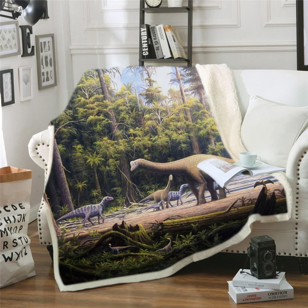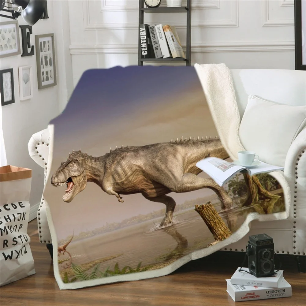 Одеяло из шерпы динозавра Юрского периода, покрывало на диван, дорожное постельное белье, бархатное плюшевое покрывало с мультяшным принтом, флисовое покрывало