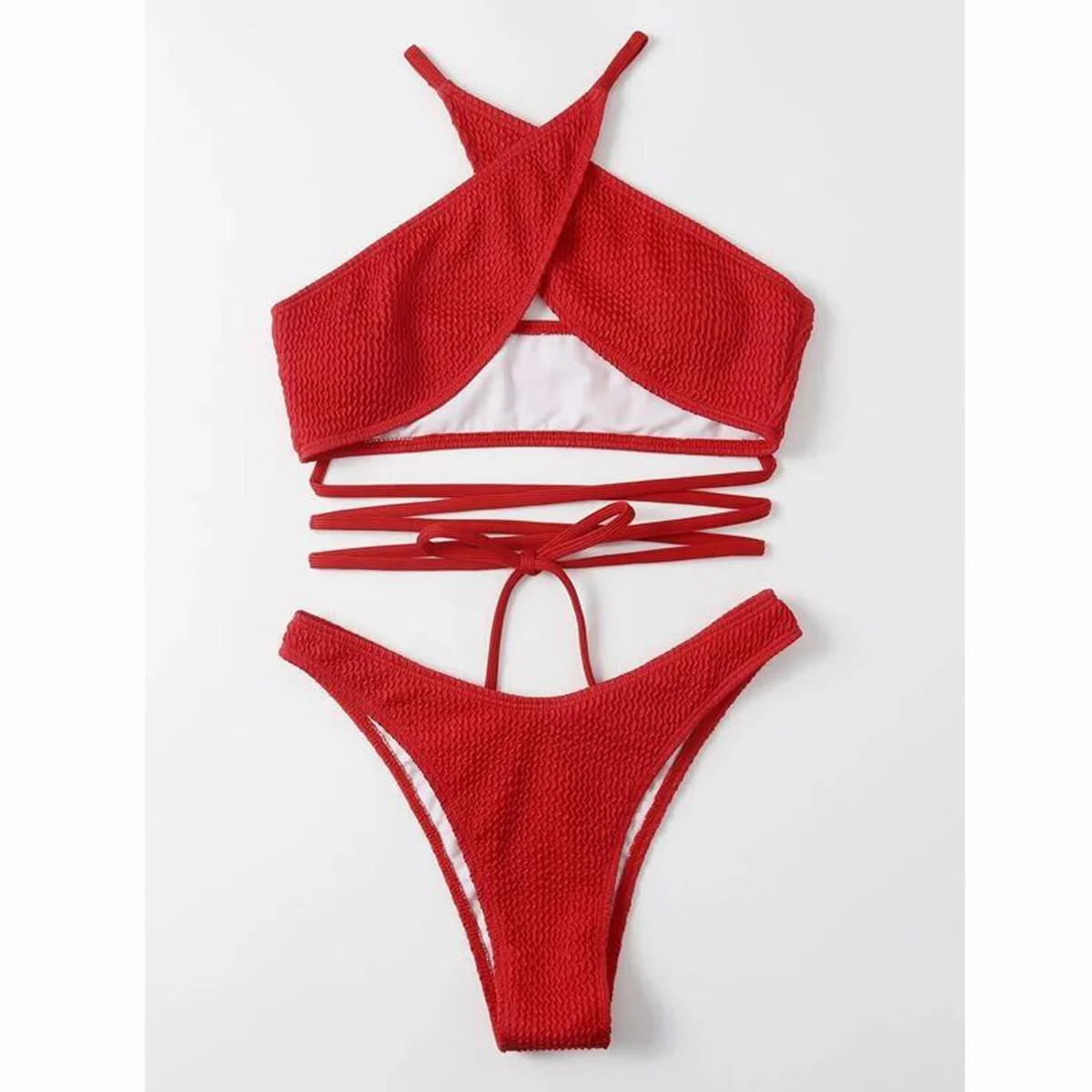 Бандажные бикини 2022, сексуальный женский купальник, однотонный ку...
