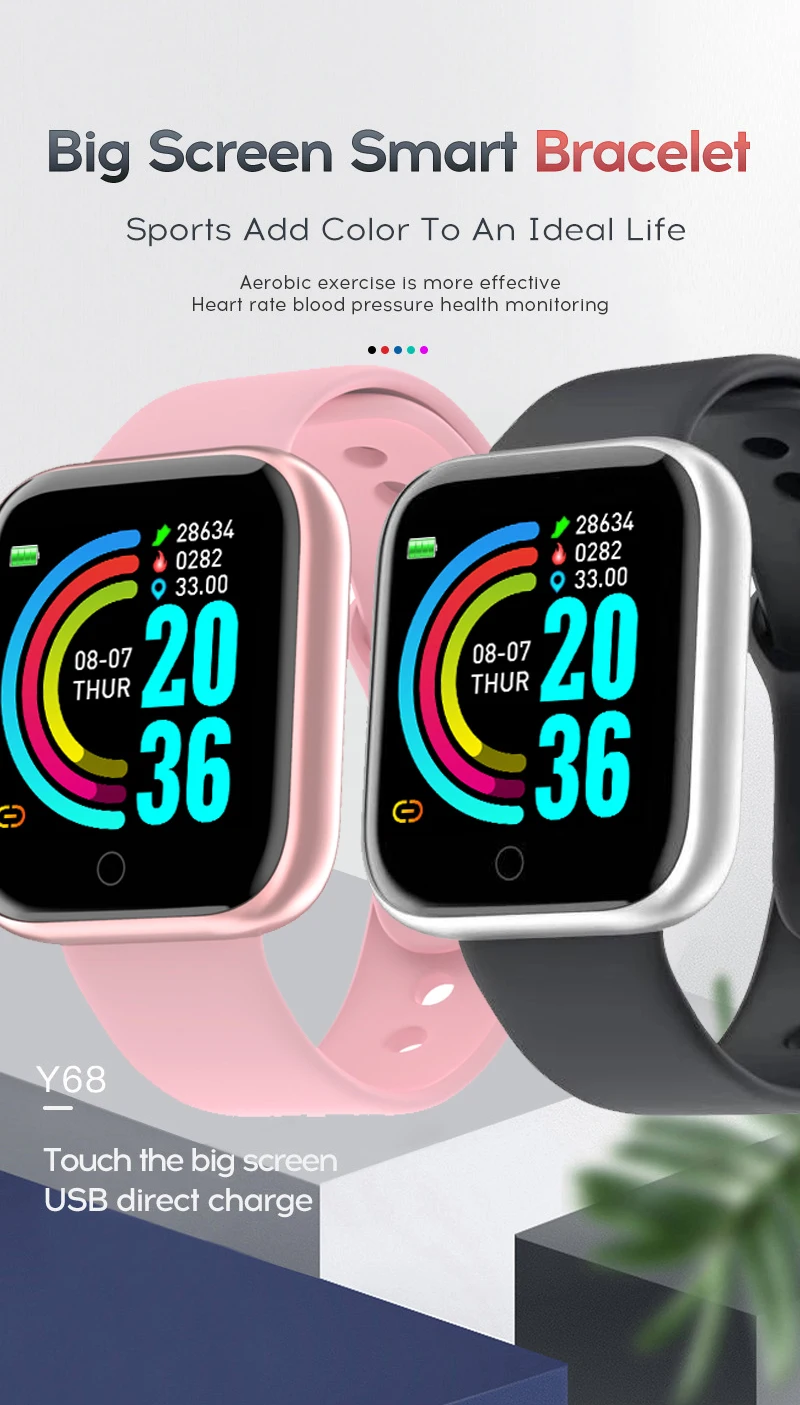 Y68 спортивные Смарт-часы для мужчин и женщин Смарт-часы 2020 фитнес-трекер жизнь водонепроницаемые Смарт-часы для Android IOS монитор сердечного ритма