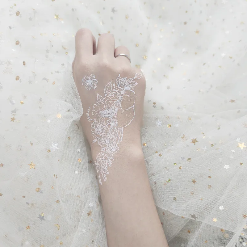Белые цветочные тату наклейки на лицо рука ключицы персонализированные наклейки поддельная Временная водостойкая татуировка для женщин