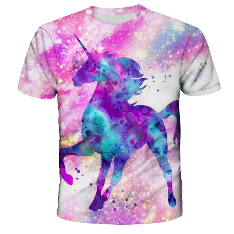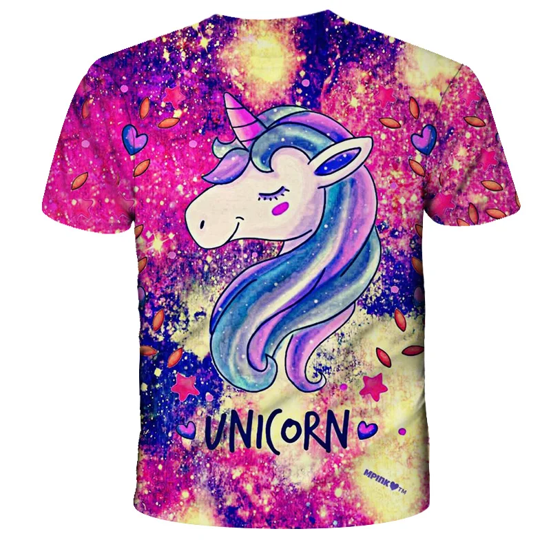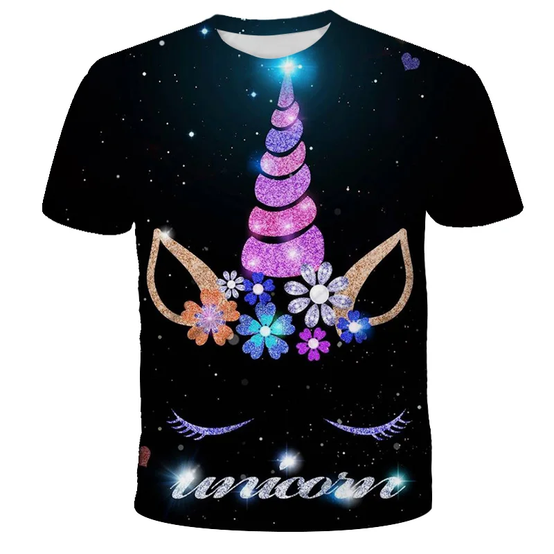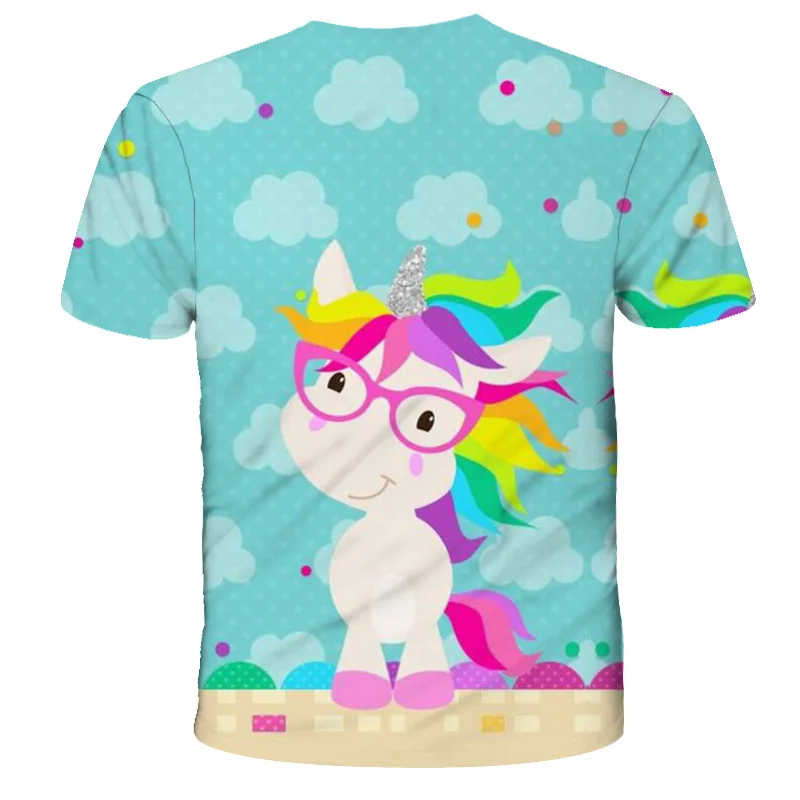 Детская футболка с единорогом, мультяшный 3D принт, футболка с коротким рукавом, детская ткань, крутые милые топы для мальчиков и девочек, модель 2021