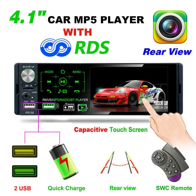 Автомобильный MP5-плеер с сенсорным экраном 4,1 дюйма, пульт дистанционного управления 1080 HD, Bluetooth RDS, резервное копирование, поддержка камеры заднего вида