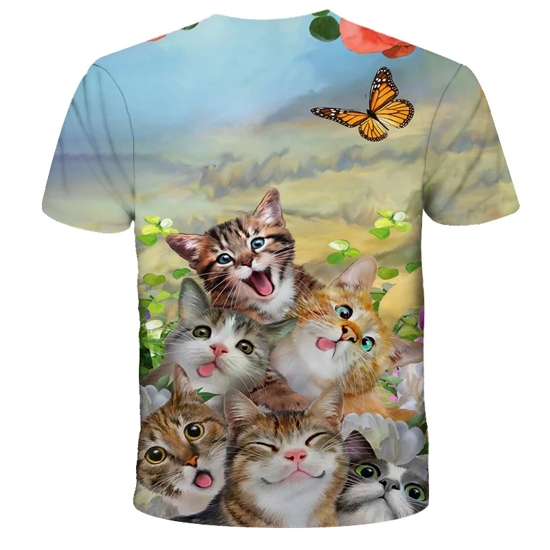 2021 футболка с 3D принтом кота, детская одежда для мальчиков и девочек, детская летняя футболка, топы с коротким рукавом, детская одежда