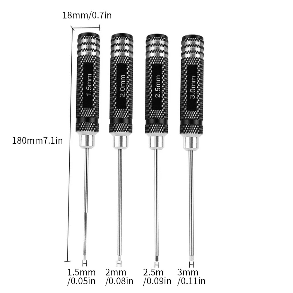 Набор из 4 шестигранных отверток на радиоуправлении 1,52,02,53,0 мм, шестигранный ключ, инструменты для ремонта автомобилей, черных вертолетов, квадрокоптеров