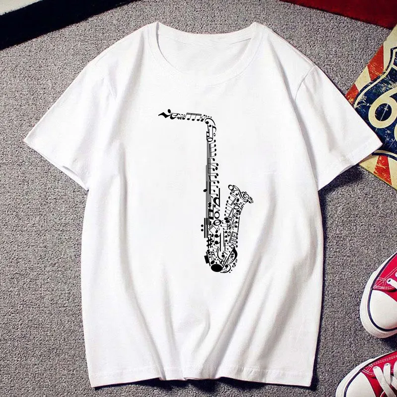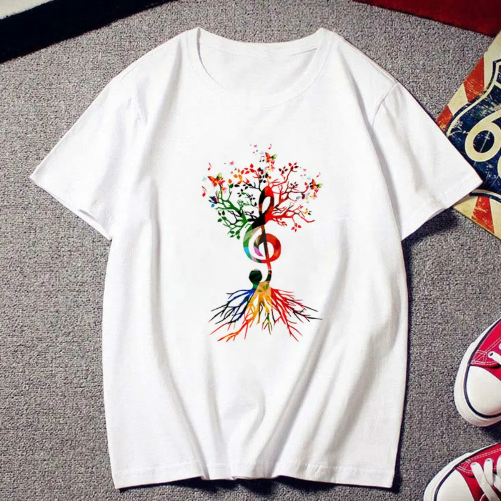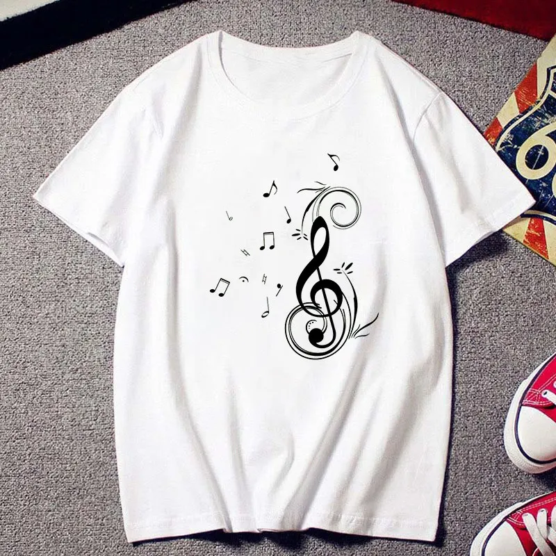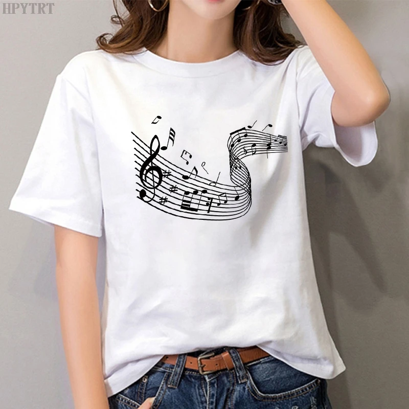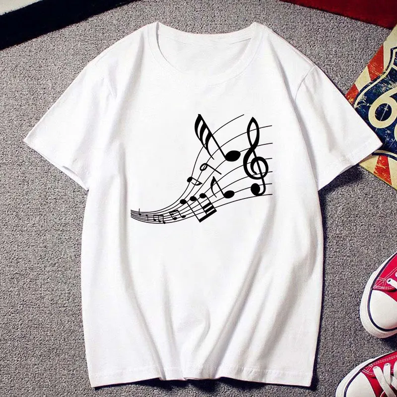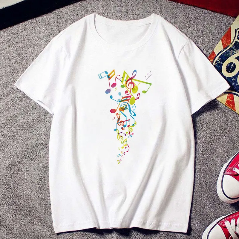 Белая детская футболка в стиле Харадзюку, Модная креативная Футболка с принтом музыкальных нот, Летняя Повседневная рубашка с коротким рукавом для мальчиков и девочек
