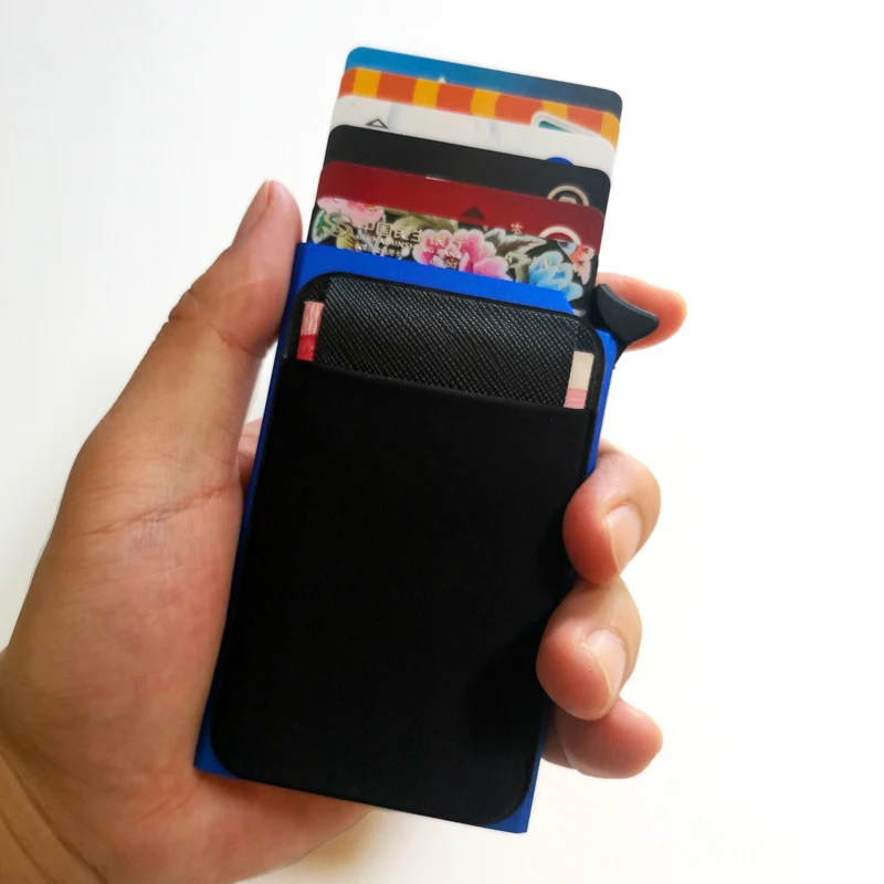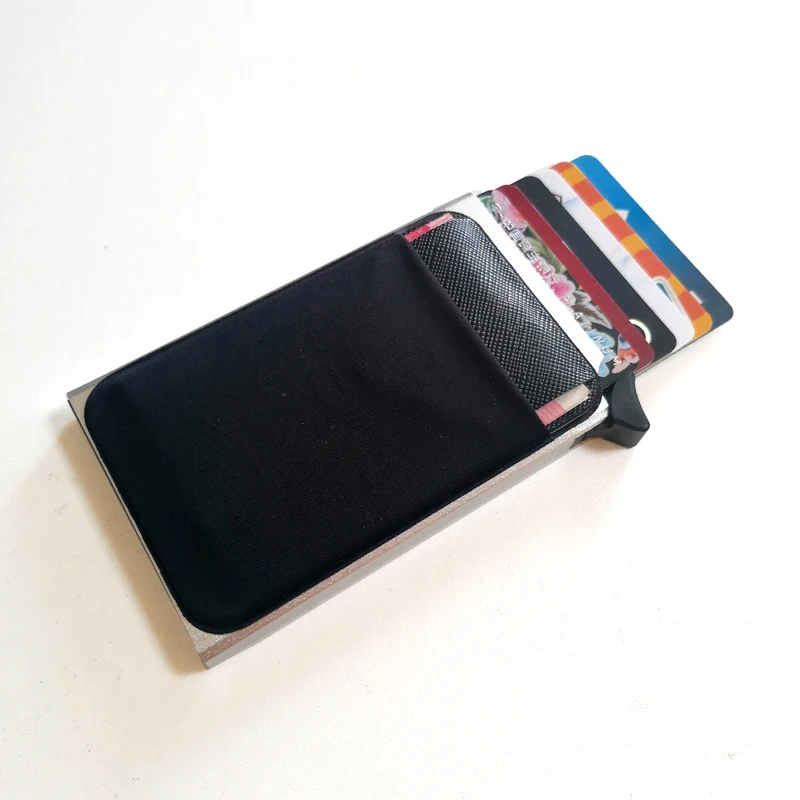 Новинка, креативный компактный металлический Автоматический Смарт-кошелек для мужчин и женщин, алюминиевый чехол для кредитных карт, рчид, выдвижной держатель для банковских карт с чехлом
