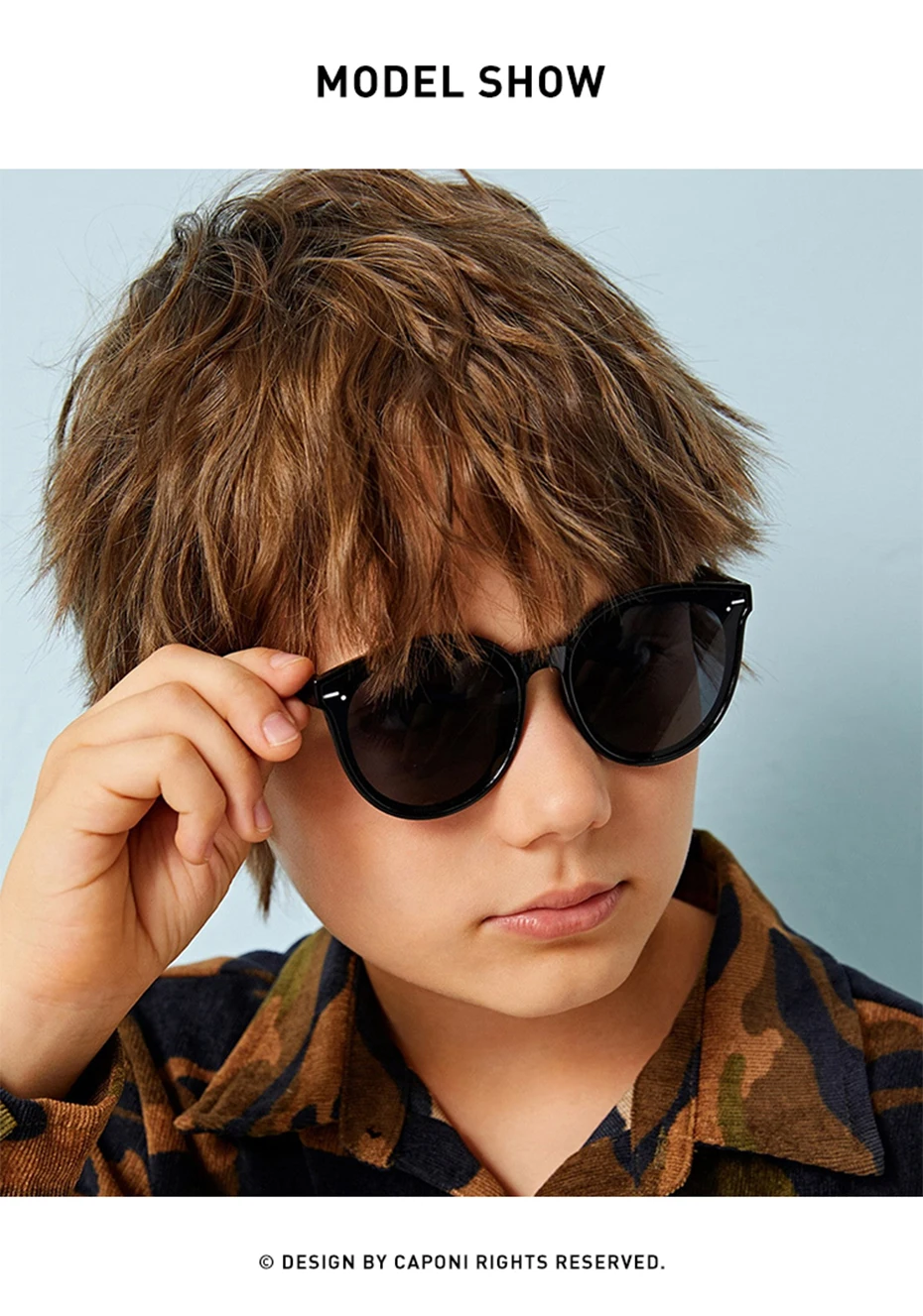 Детские поляризационные солнцезащитные очки CAPONI, оригинальные фирменные дизайнерские солнцезащитные очки для мальчиков и девочек с защитой от УФ лучей, детские очки BR2105