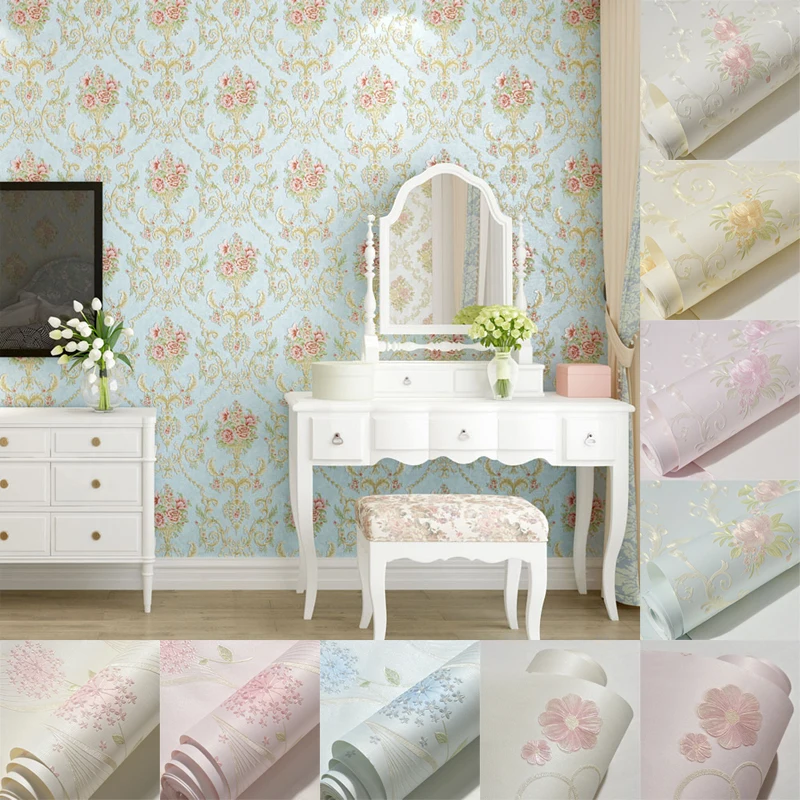 1 рулон 1 м обои 3D цветочный принт нетканый Европейский стиль самоклеящееся покрытие стен Украшение Дома Спальня Роскошный декор