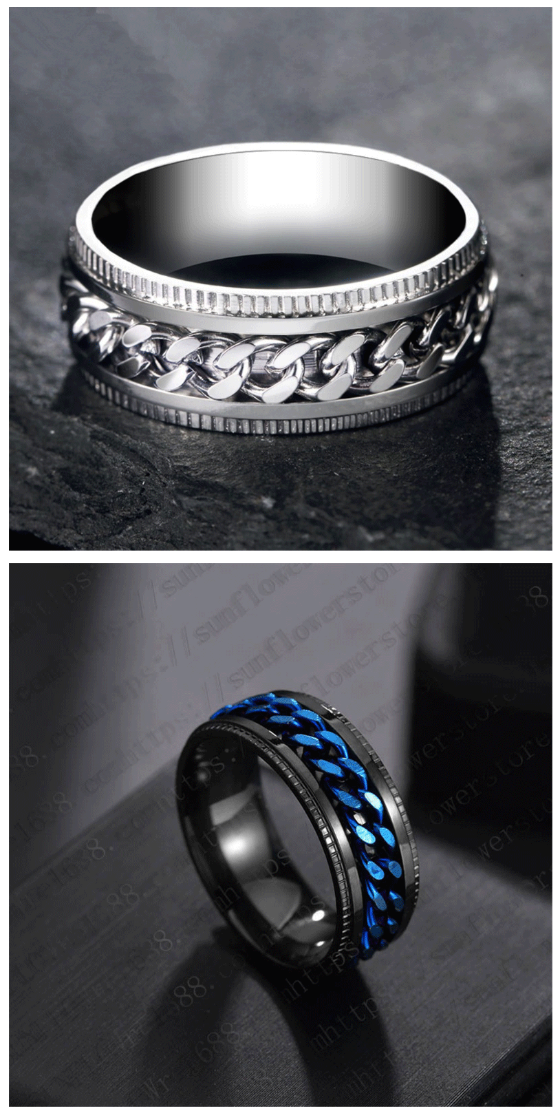 Вращающиеся кольца-антистресс для мужчин, титановая цепочка из нерж...