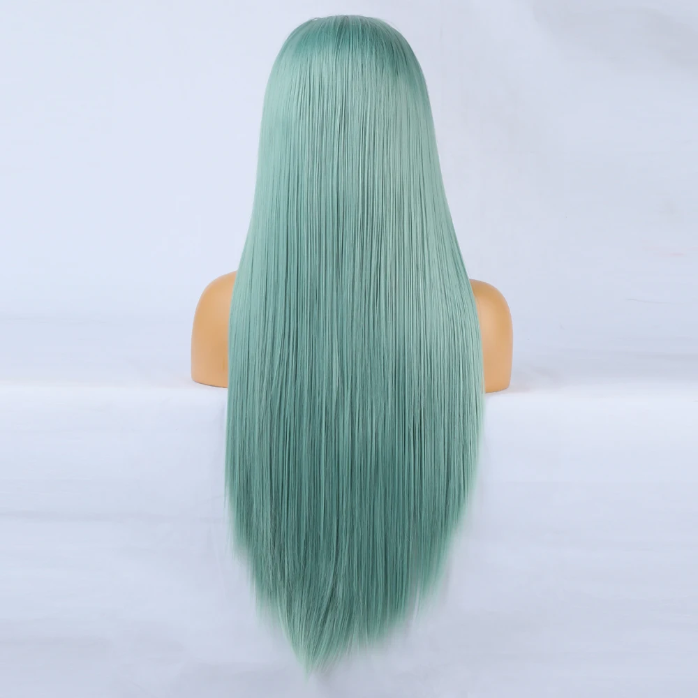 Парик на сетке спереди с естественной линией волос, Длинные прямые синтетические парики для чернокожих женщин, зеленый парик, парики на сетке без клея для косплея