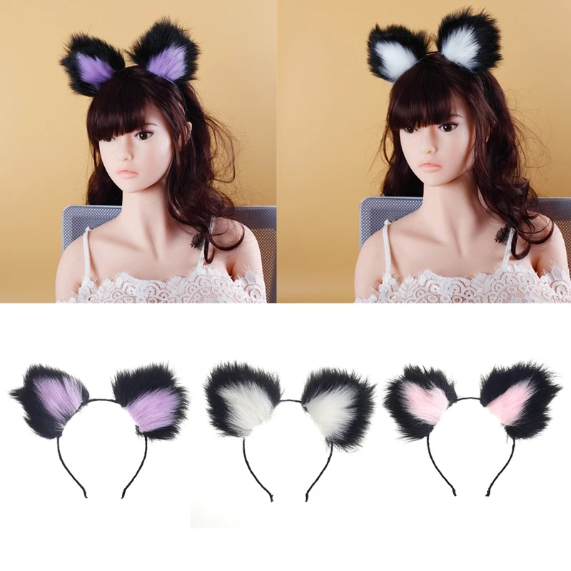 Обруч для волос с ушками животных для девочек, плюшевая повязка для волос, Женский обруч для Хэллоуина, вечерние головной убор, маскарадный аниме, косплей, вечерние аксессуары Kawaii
