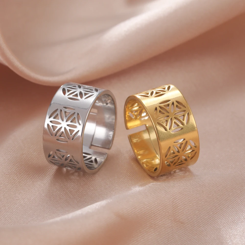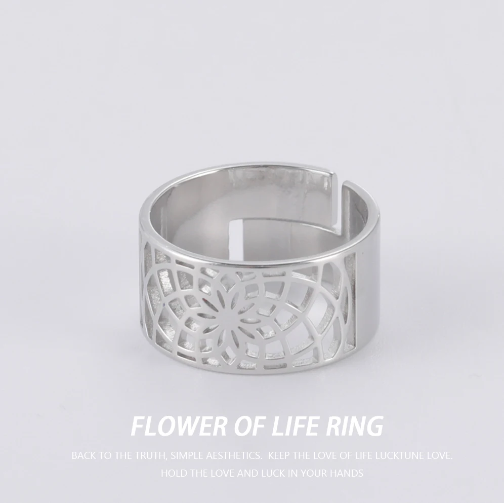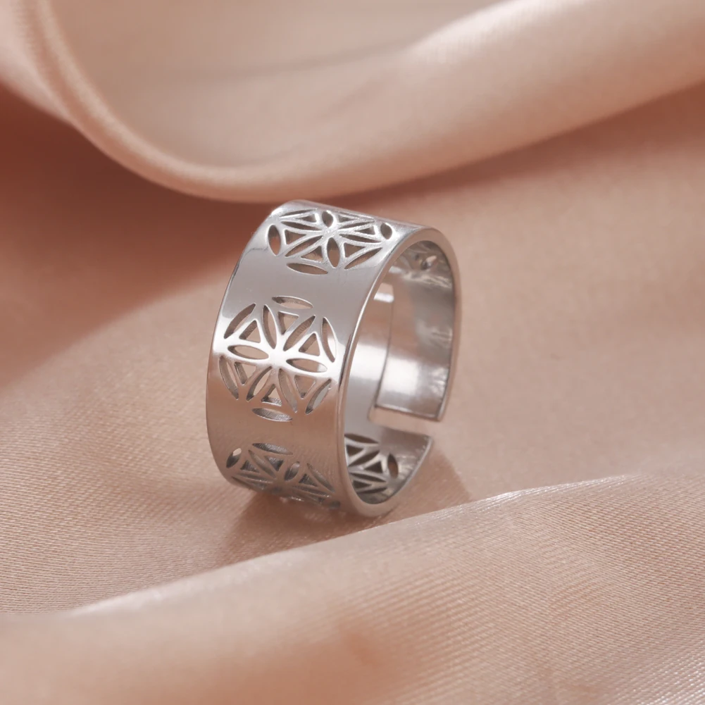 Женское кольцо из нержавеющей стали, с изображением цветов жизни