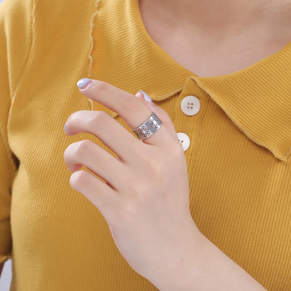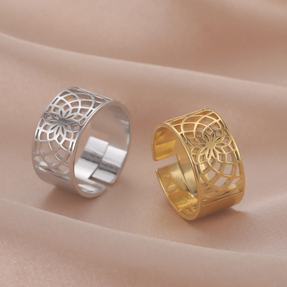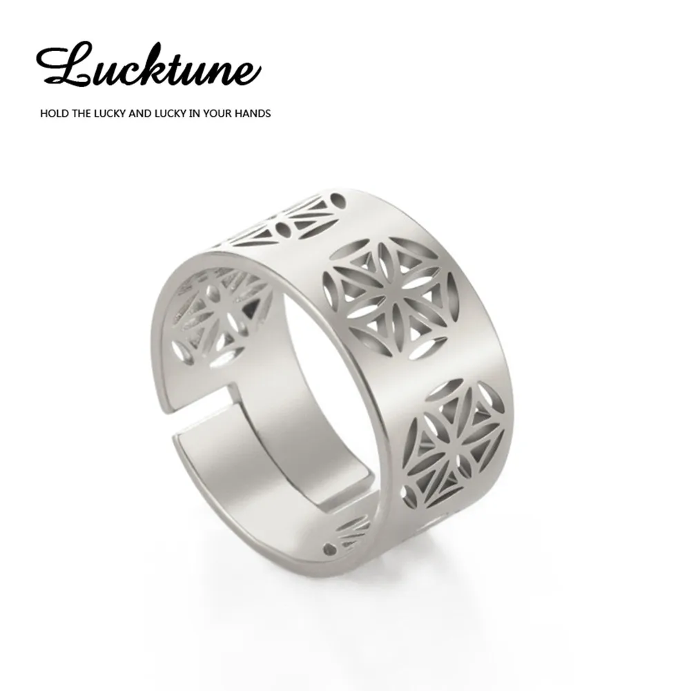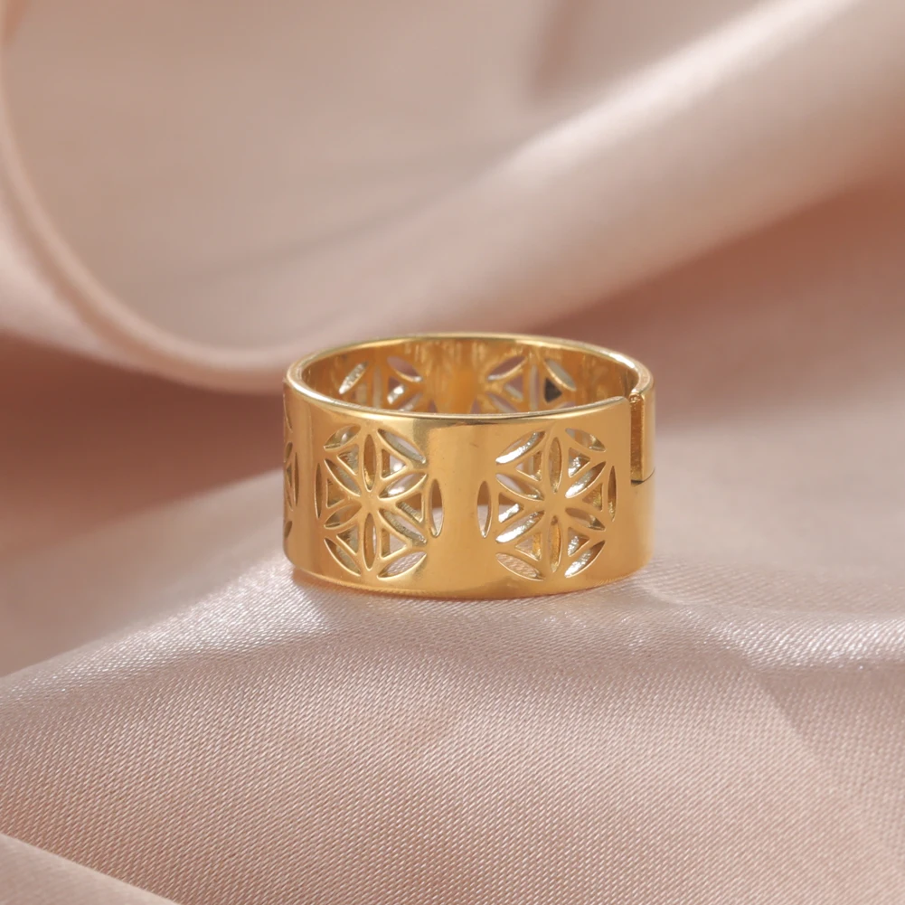 Женское кольцо из нержавеющей стали, с изображением цветов жизни