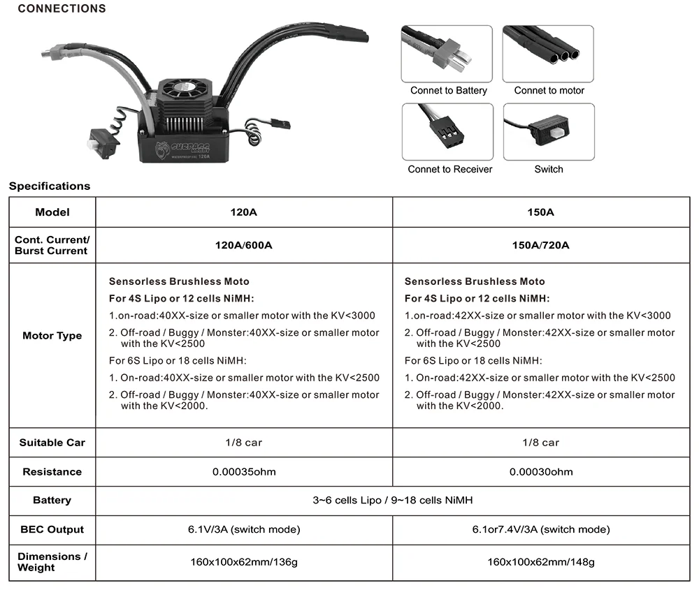 Радиоуправляемый автомобиль 1:10 Запчасти 3650 366060A 80A 120A ESC...