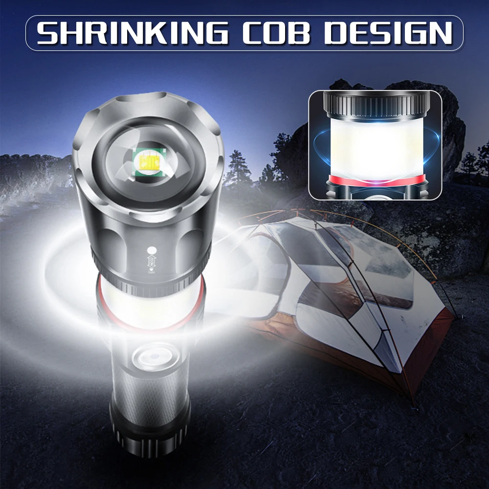 Высококлассная светодиодная вспышка с USB-зарядкой и эффектом тверсветильник, фонарь с магнитом на тыльной стороне, с поддержкой зума T6 L2, 4 режима, фонарь с зумом для лагеря