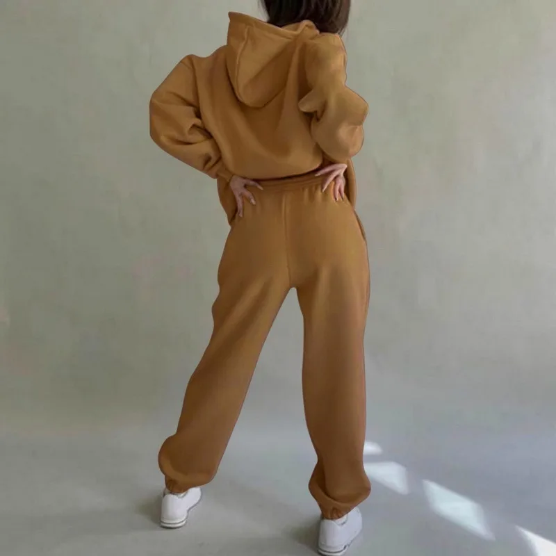 Женский спортивный костюм из двух предметов, повседневный флисовый ...