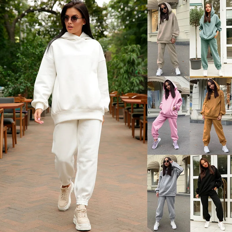 Женские толстовки и спортивные штаны, белые спортивные костюмы из двух предметов, однотонные пуловеры, куртка, повседневная одежда для отдыха, осень 2021