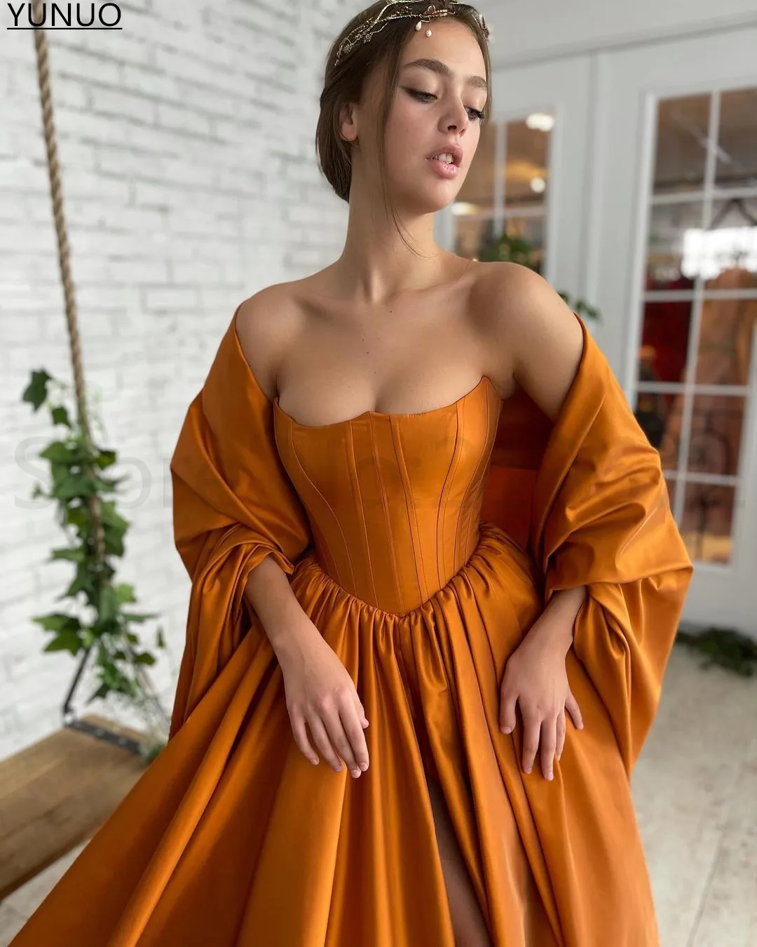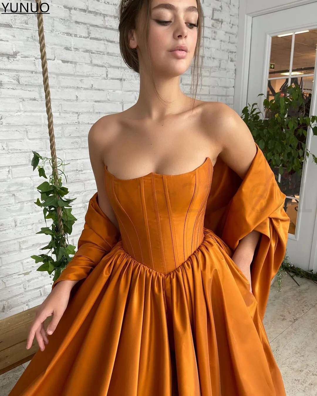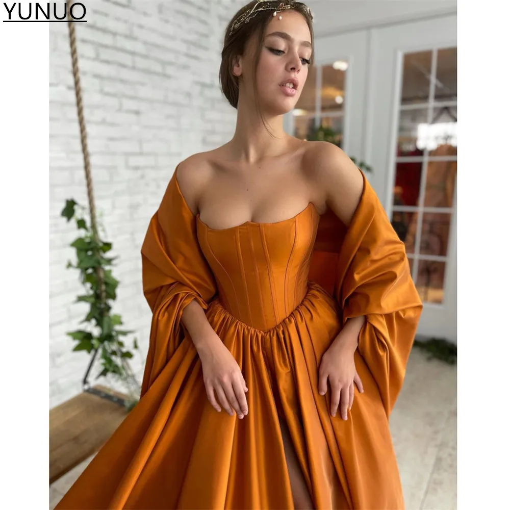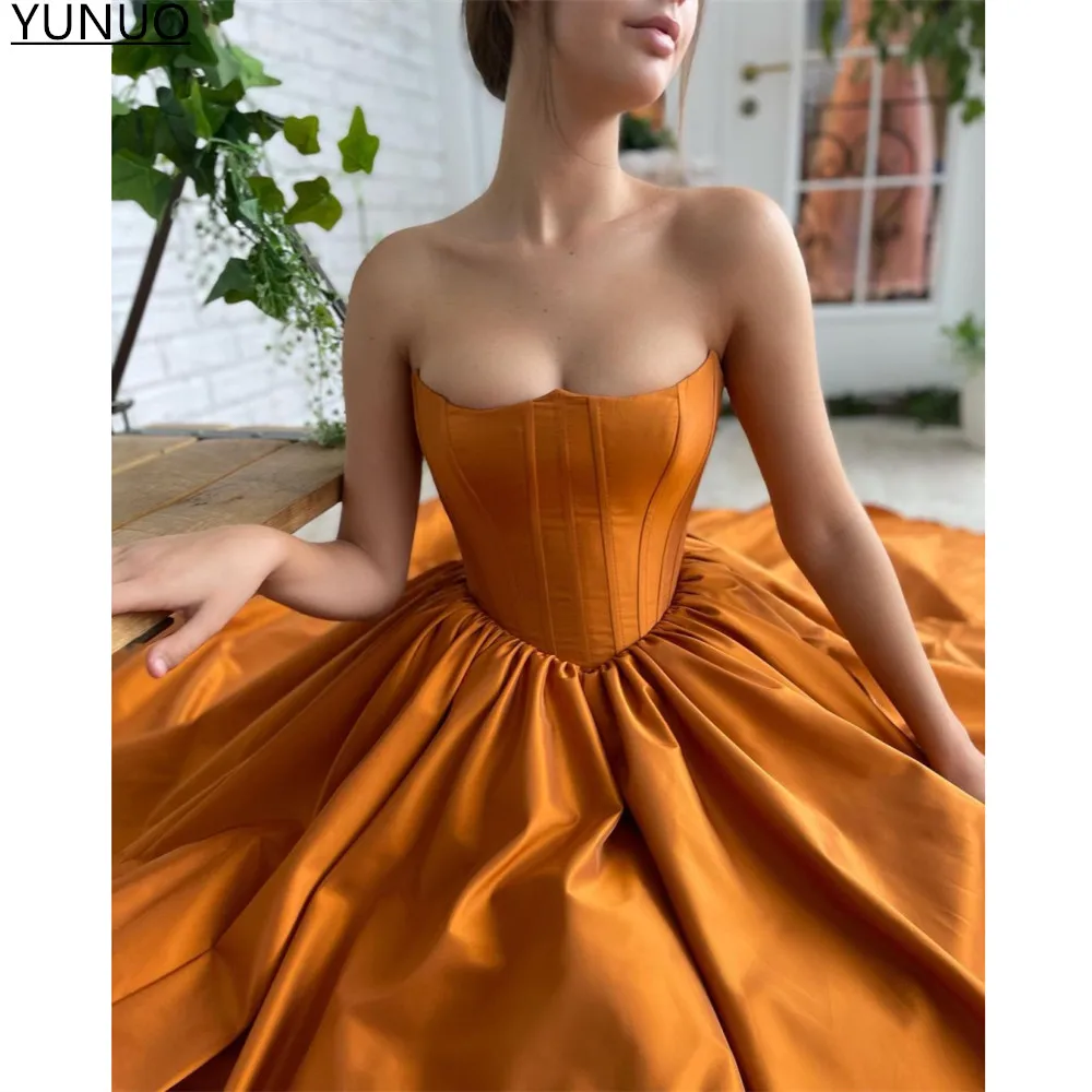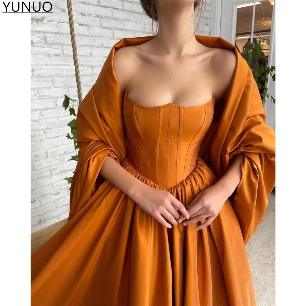 YUNUO трапециевидные атласные оранжевые официальные платья для выпускного вечера, без бретелек, со шнуровкой, корсет, вечернее платье, вечерние платья, платья с шалью