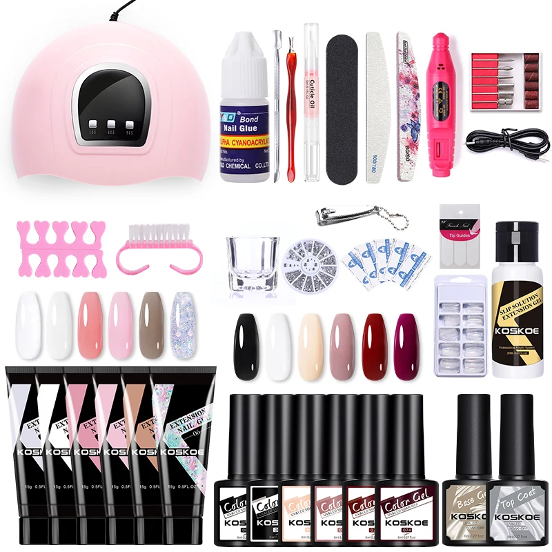 Маникюрный набор KOSKOE для наращивания ногтей с УФ светодиодный светодиодной лампой Прозрачный телесный розовый цвет быстрое наращивание