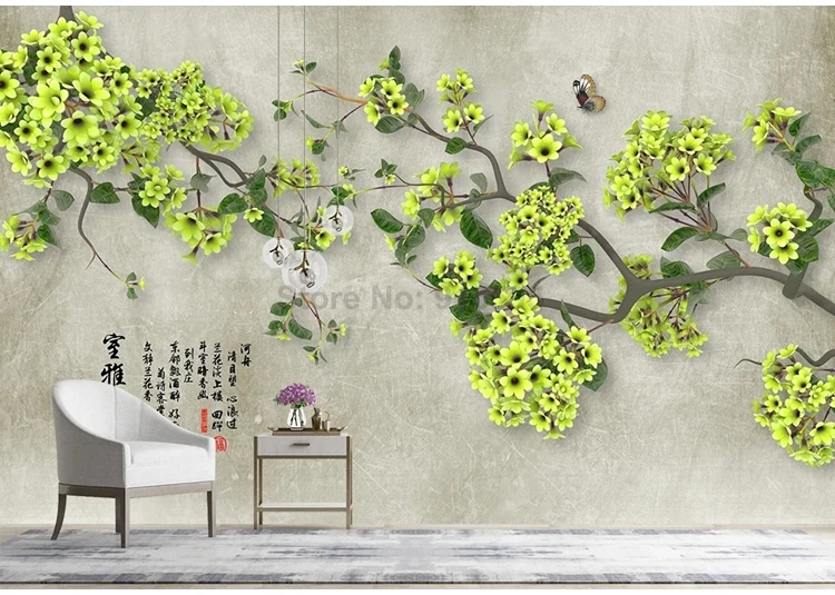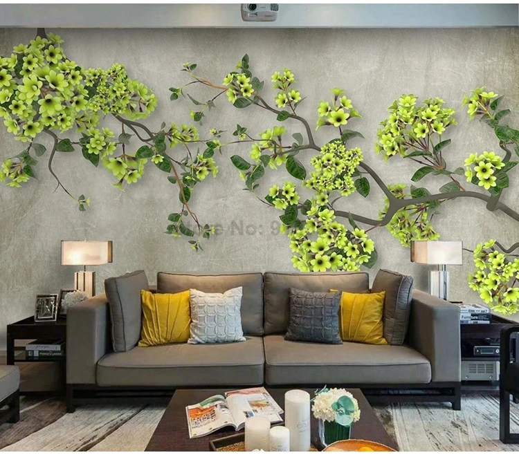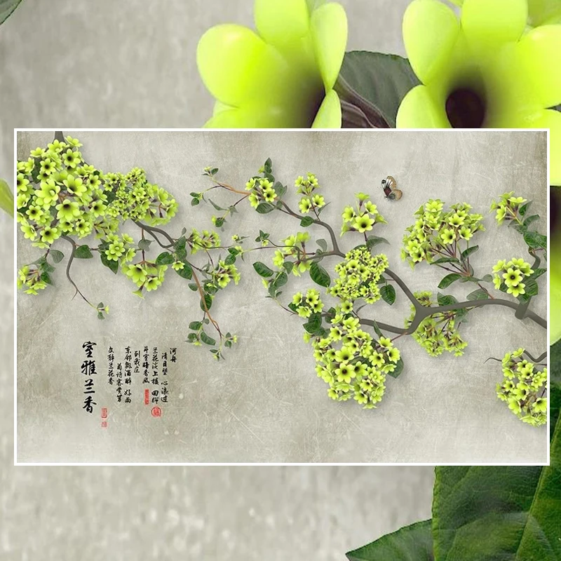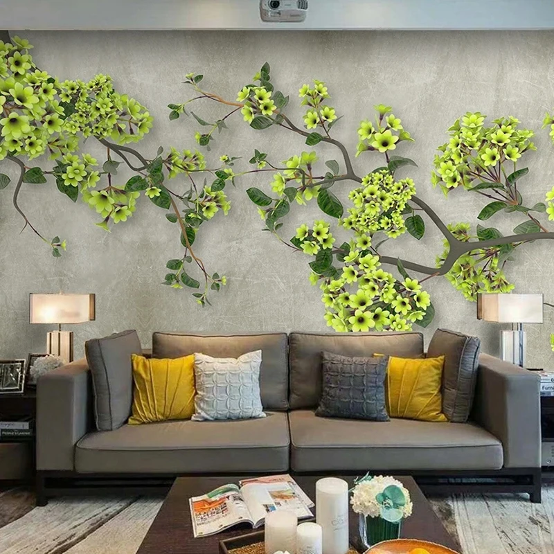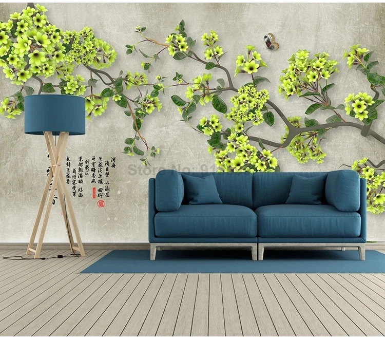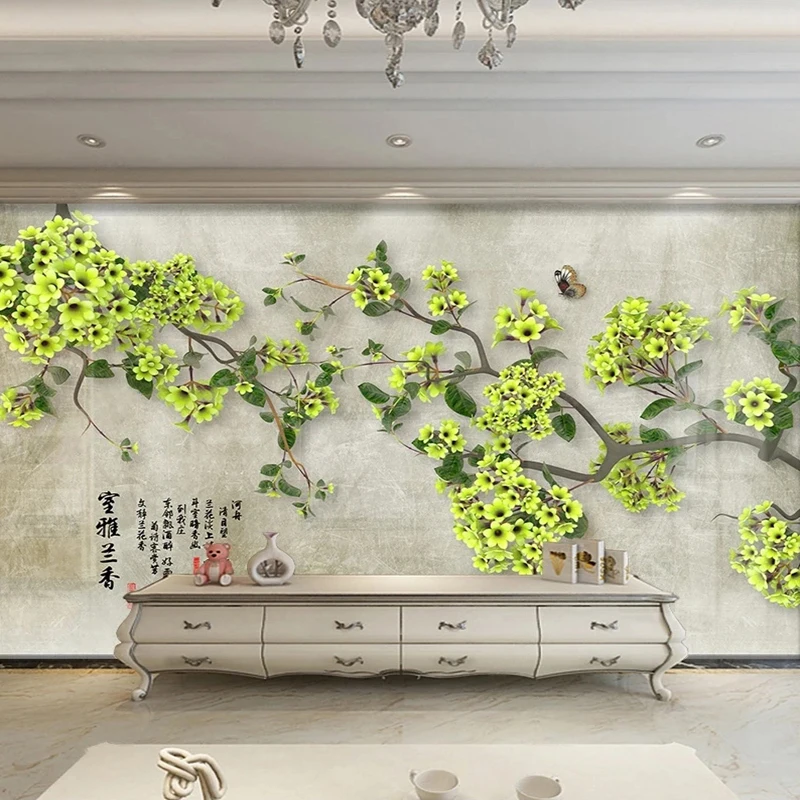 Настенная роспись на заказ, объемные тисненые обои в китайском стиле с объемным изображением цветов, дерева, дивана, фона под Телевизор