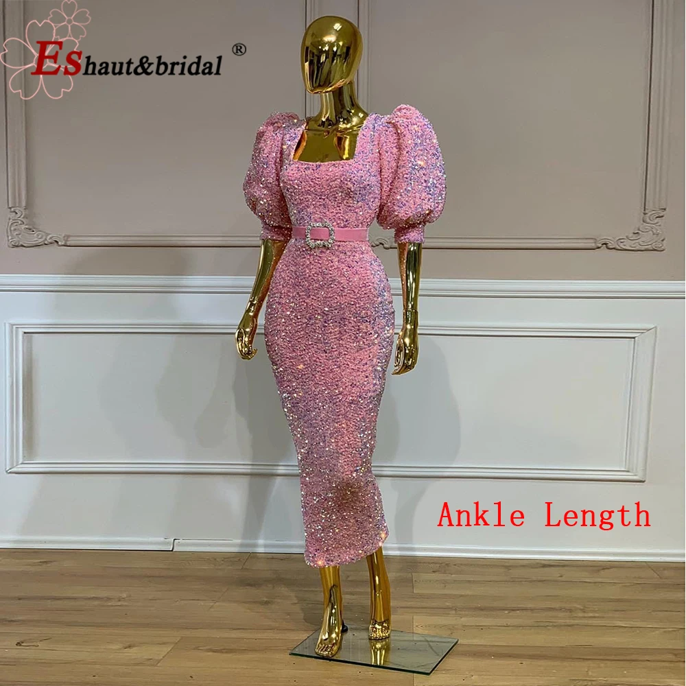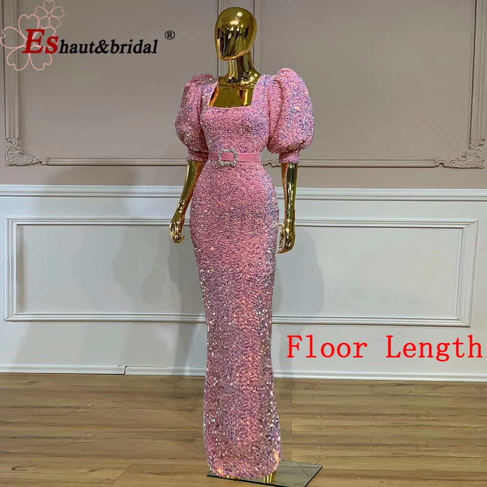 Женское вельветовое платье-русалка, элегантное вечернее платье с рукавами-фонариками, квадратным вырезом, блестками, Формальное, для свадьбы, выпускного вечера, 2021
