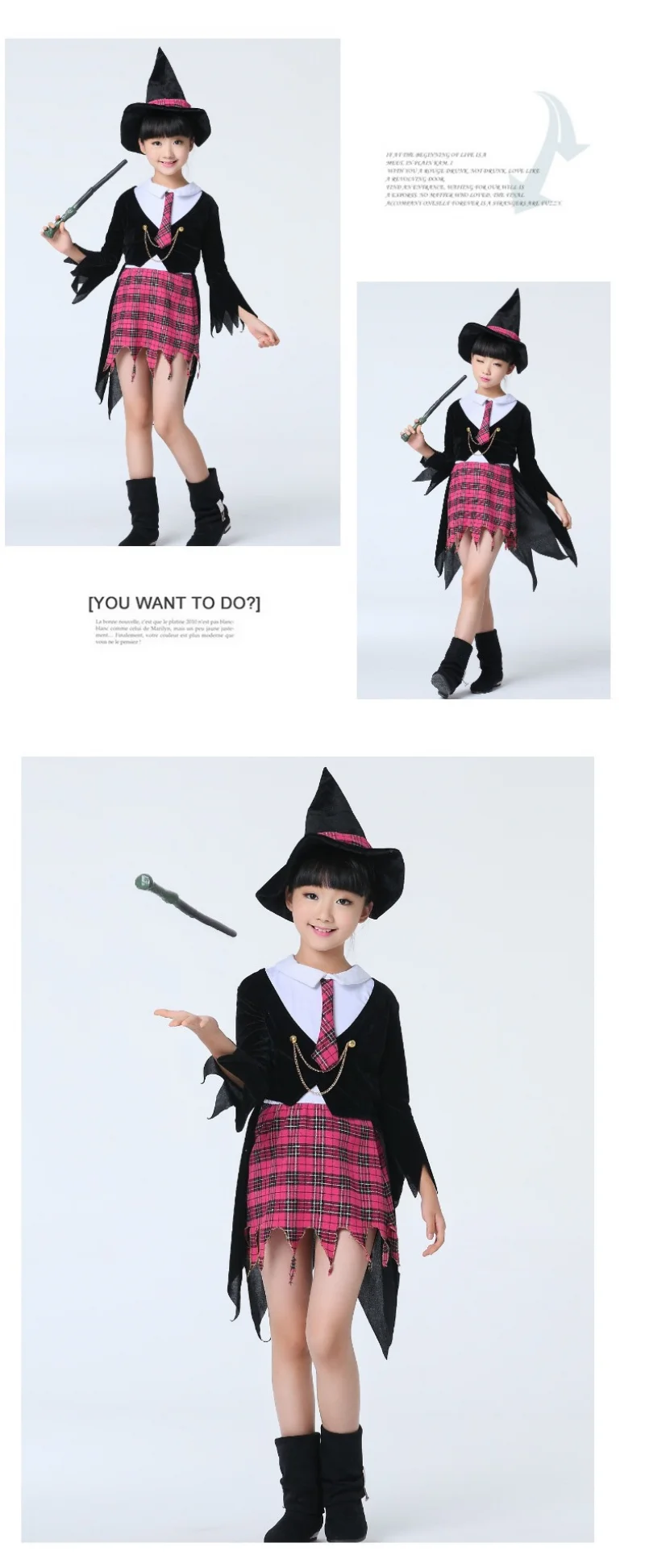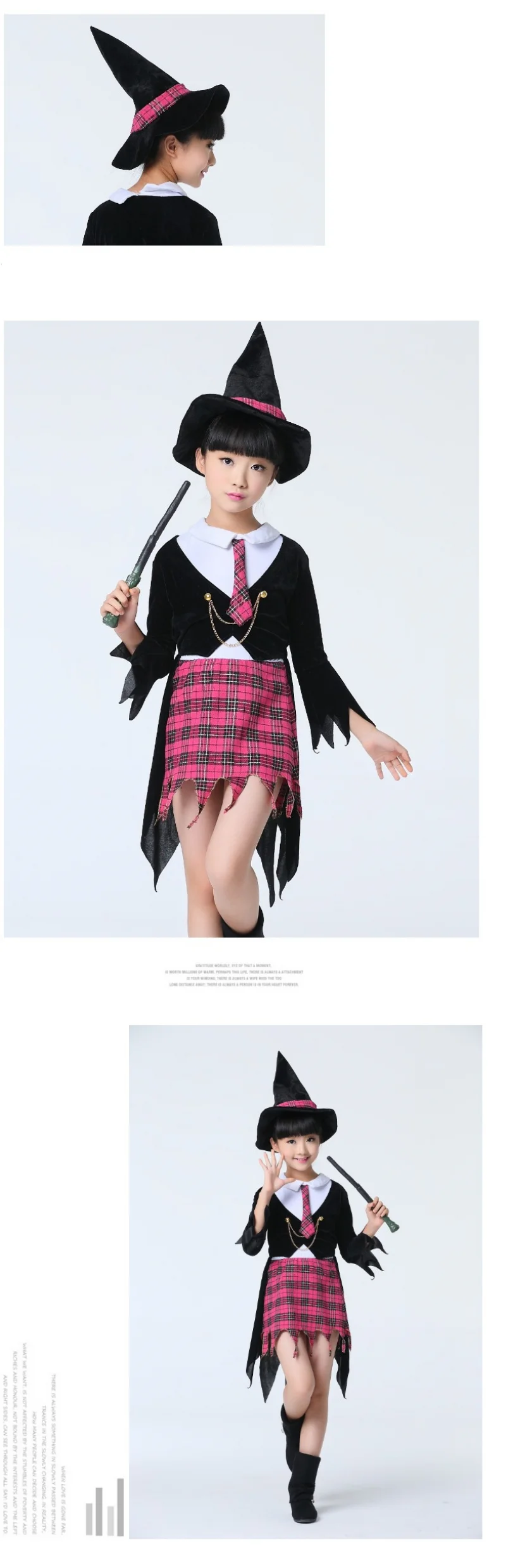 Детский костюм для косплея ведьмы на Хэллоуин, розовая клетчатая юбка для девочек, платье для карнавала и вечерние с заостренной шляпой, женская одежда 2022