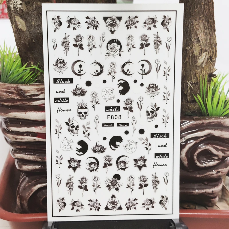 3D наклейки для ногтей, розы, цветы, луна, Череп, буквы, наклейки для ногтей, Осенние дизайнерские наклейки для маникюра, наклейки, украшения для ногтевого дизайна