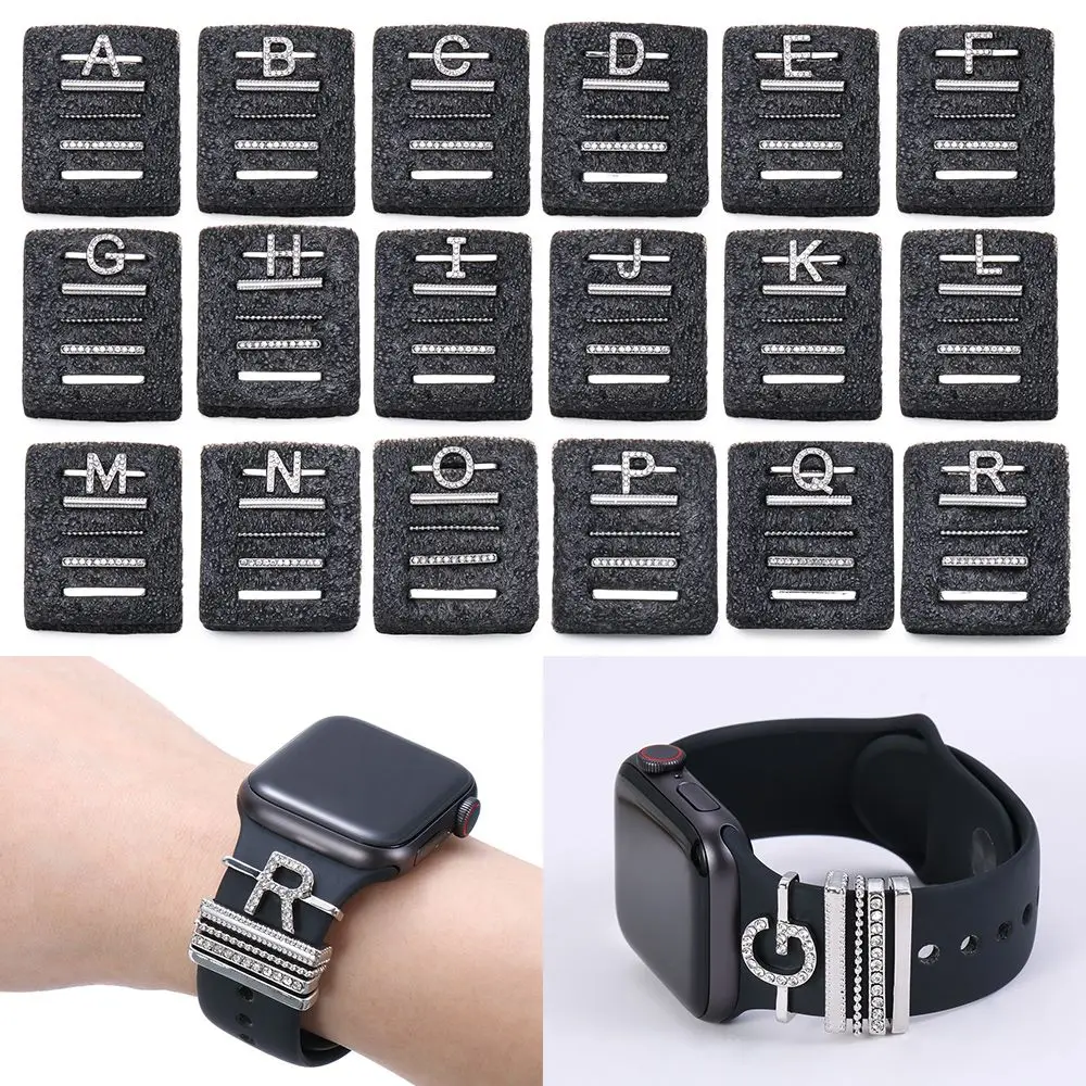 A-Z, металлические подвески, декоративное кольцо для Apple Watch, ремешок с алмазным орнаментом, Смарт-часы, силиконовый ремешок для iwatch, браслет