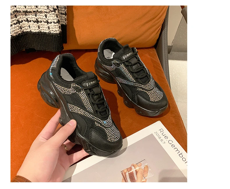 Стразы кроссовки; Женская повседневная обувь на платформе со шнуровкой для спортивной обуви осень с толстой подошвой; Обувь для ходьбы и бега; Беговые кроссовки; Обувь 2021; Туфли с подошвой из вулканизированной резины