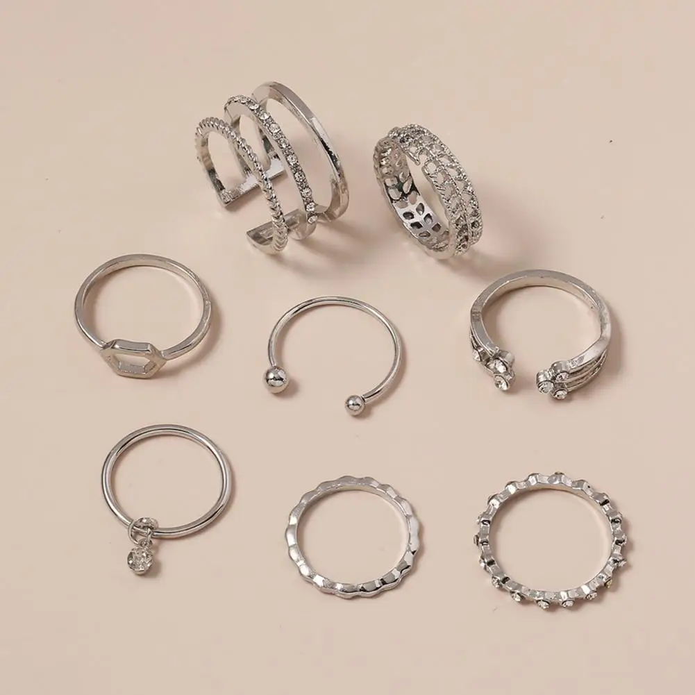 8 шт женские кольца шестигранные простые изысканные универсальные геометрические кольцаТехнические характеристики:Благодаря дизайну геометрической формы кольца очень модные, уникальные и привлекательные. И стразы делают кольца очень блестящими и модными.Женщины будут более элегантными, очаровательными и привлекательными, носить эти универсальные блестящие кольца со стразами.Изготовлен из высококачественного сплава, износостойкий и прочный.Диаметр колец составляет около 1,7 см.Подходит для свиданий, вечеринок, свадеб, повседневной носки, офиса, косплея и т. д.Название товара: кольцаМатериал: сплавСтиль: МодаПол: Для женщинЦвет: серебристый, золотистыйОсобенности: геометрический узор, стразы, блестящиеПодробная информация о размерах:Диаметр: 1,7 см/0,67 дюйма (прибл.)Примечания:Из-за разницы в освещении и настройках экрана цвет товара может немного отличаться от изображения.