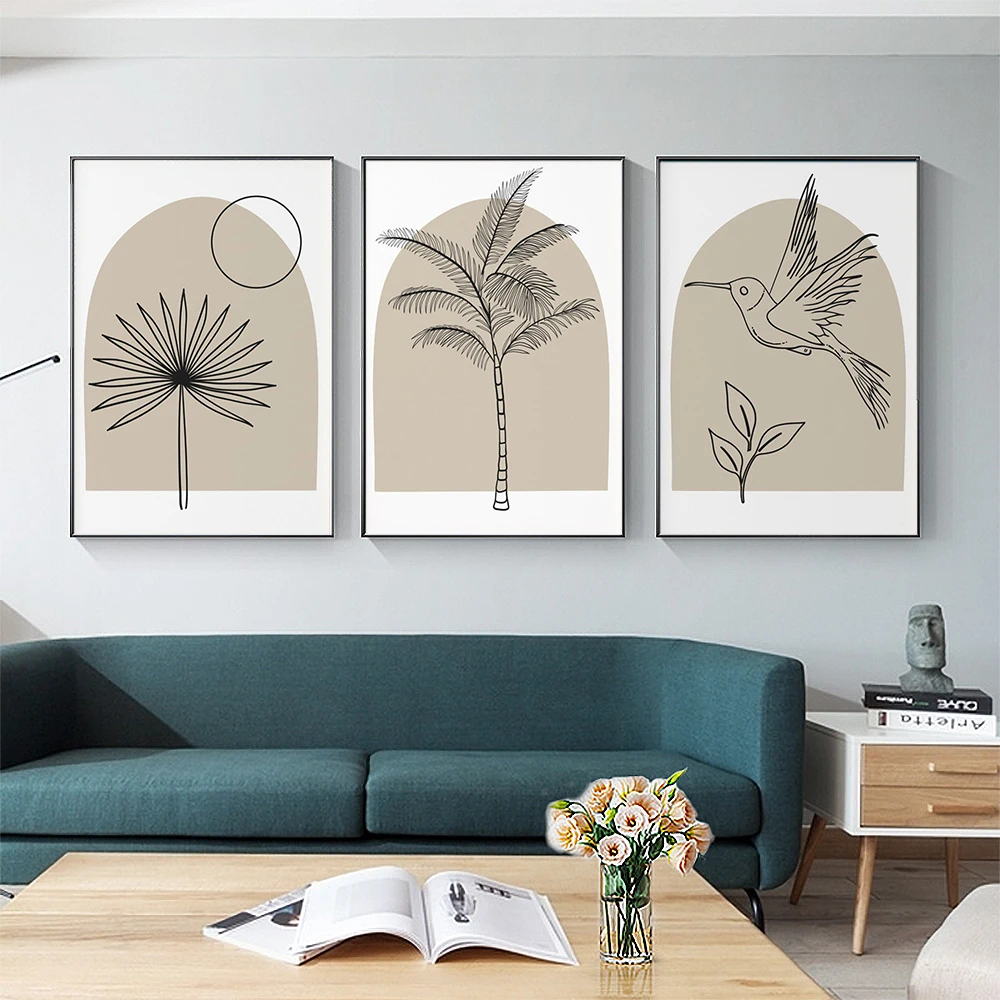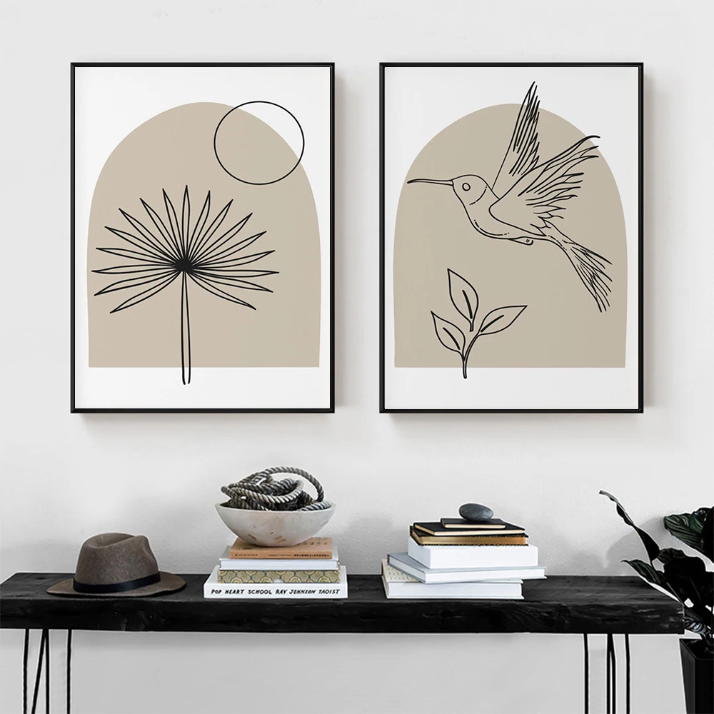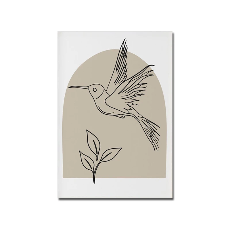 Минималистский плакат, тропические растения, линия, холст, пальмы, колибри, пейзаж, картина, искусство, печать, Настенная картина, декор для гостиной, дома