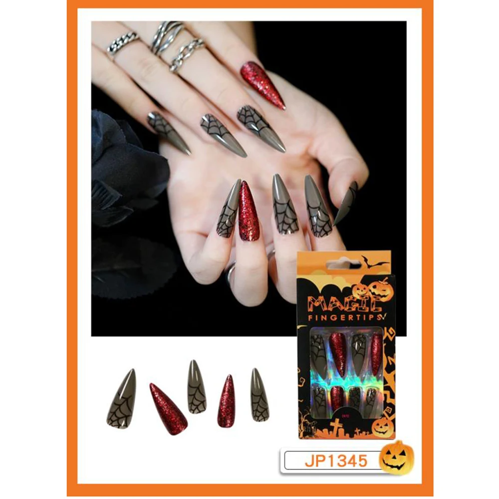 24 шт.кор. накладные ногти в стиле Хэллоуин длинные съемные накладные ногти на шпильках балерины накладные ногти с полным покрытием накладные ногти