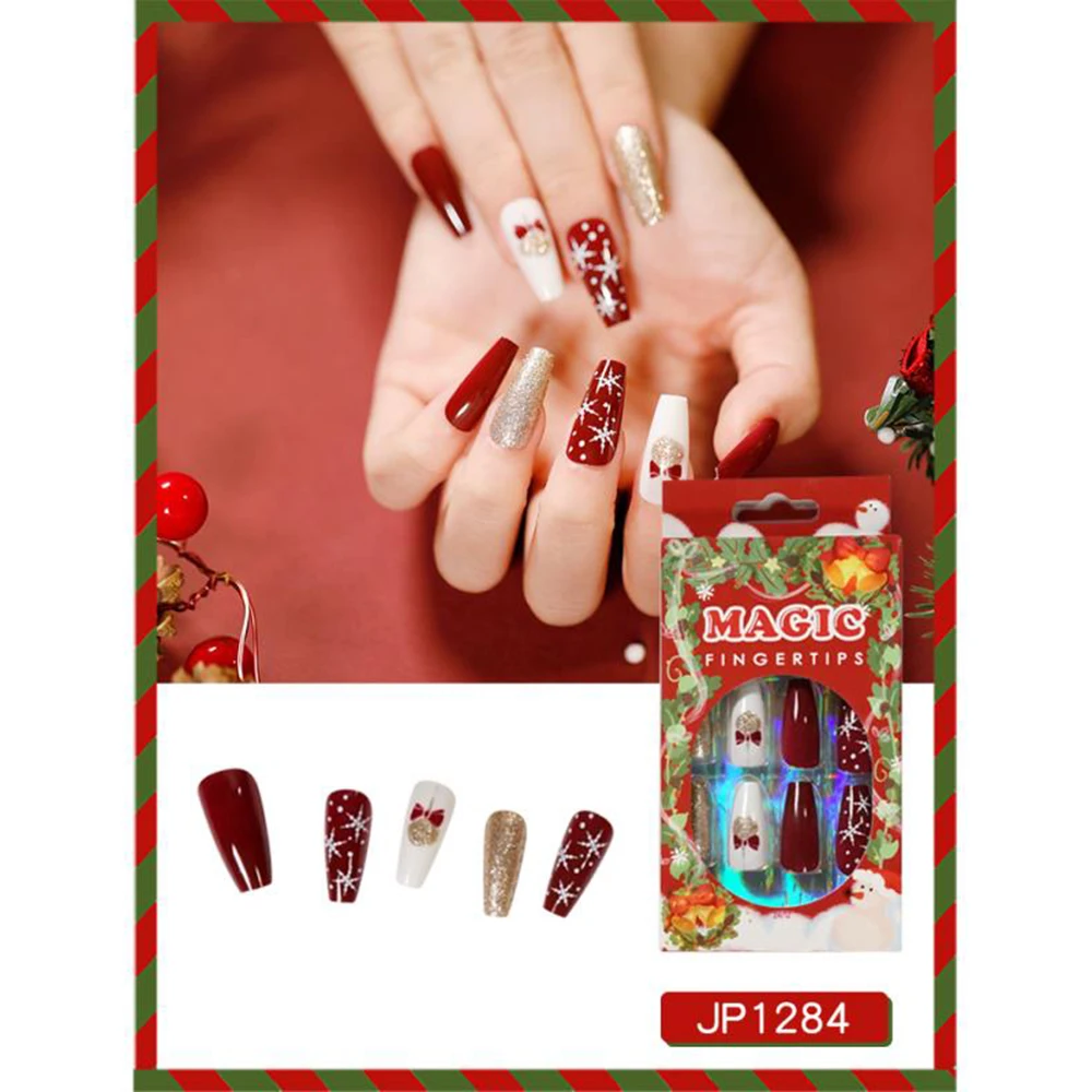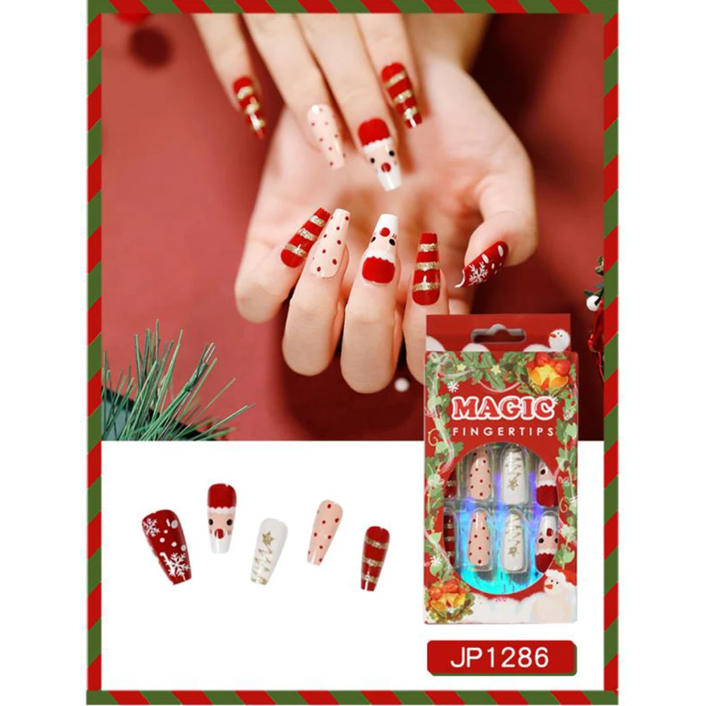 24 шт.корт. Рождественские накладные ногти в гробе накладные ногти ...