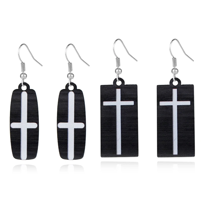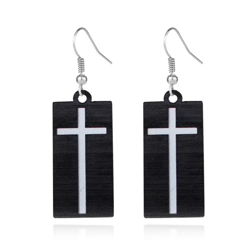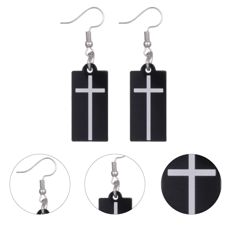 Серьги-подвески с черным крестом из акриловой смолы для косплея