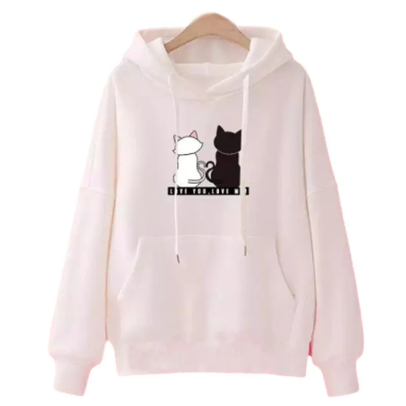Уличные толстовки, Женская толстовка, осенняя толстовка с капюшоном с длинным рукавом, в стиле Харадзюку, с принтом кота, Женская толстовка