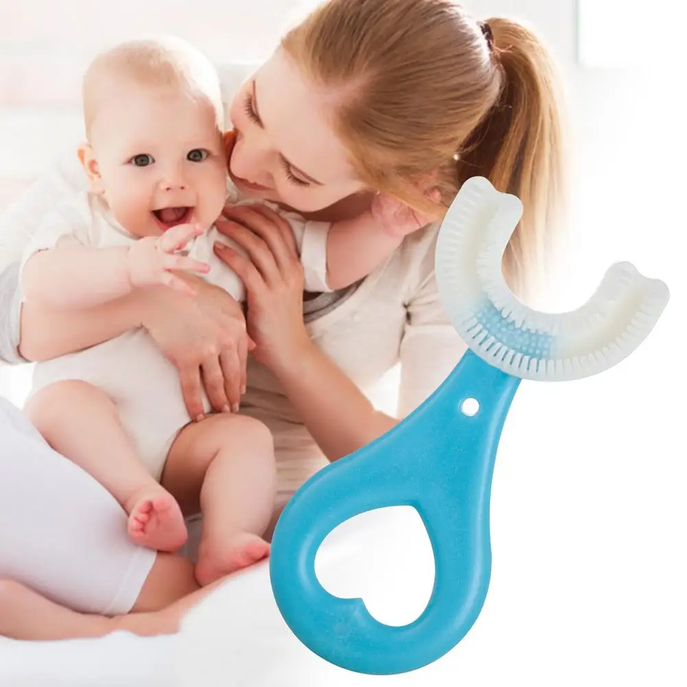 Детская зубная щетка U-образной формы, безопасная мягкая круглая детская зубная щетка 360, чистка зубов ротовой полости, зубная щетка для малышей, 2 вида,