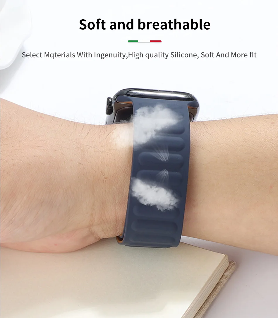 Ремешок магнитный для Apple Watch Band 44 мм 40 мм 38 мм 42 мм, Воздухопроницаемый Силиконовый эластичный браслет для iWatch Series 7 5 4 3 2 6SE