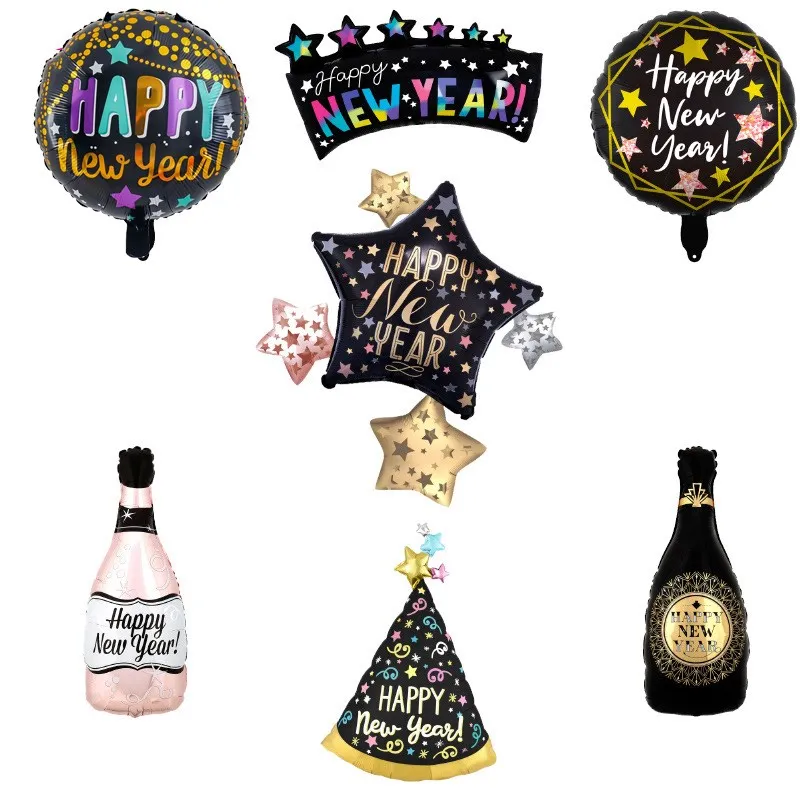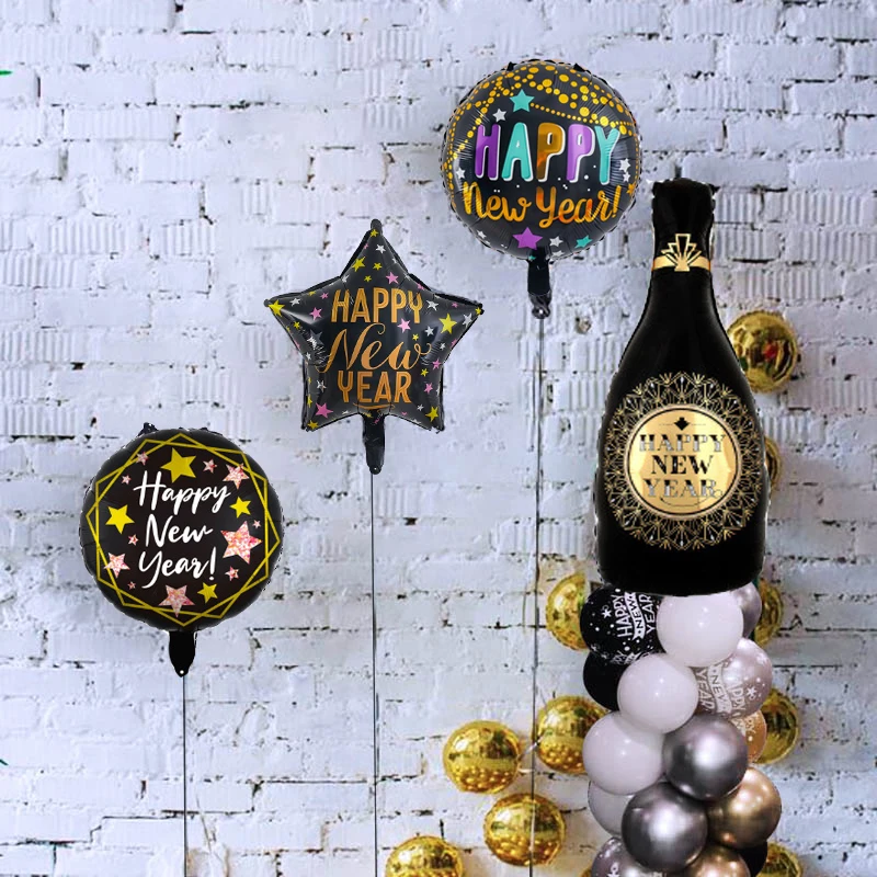 2022 фольгированные шары с Новым годом, винная бутылка, звезда, зве...