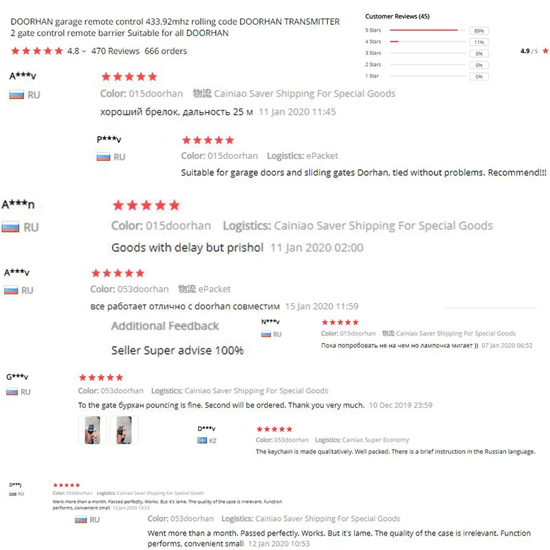 Все DOORHAN пульт дистанционного управления 433 МГц код прокаткиНапример:Премиум RC черный 4Передатчик Doorhan 2Передатчик Doorhan 4Передатчик Doorhan 2-proПередатчик Doorhan 4-proОбратите внимание, что наш пульт дистанционного управления является совместимым/заменяемым/клонированным пультом, а не оригинальным.