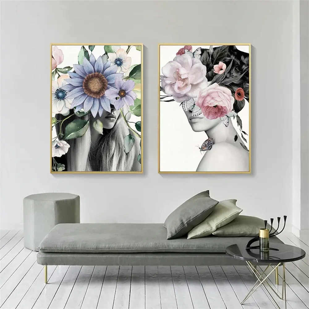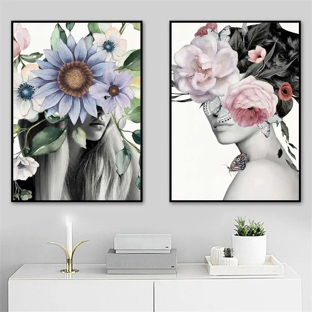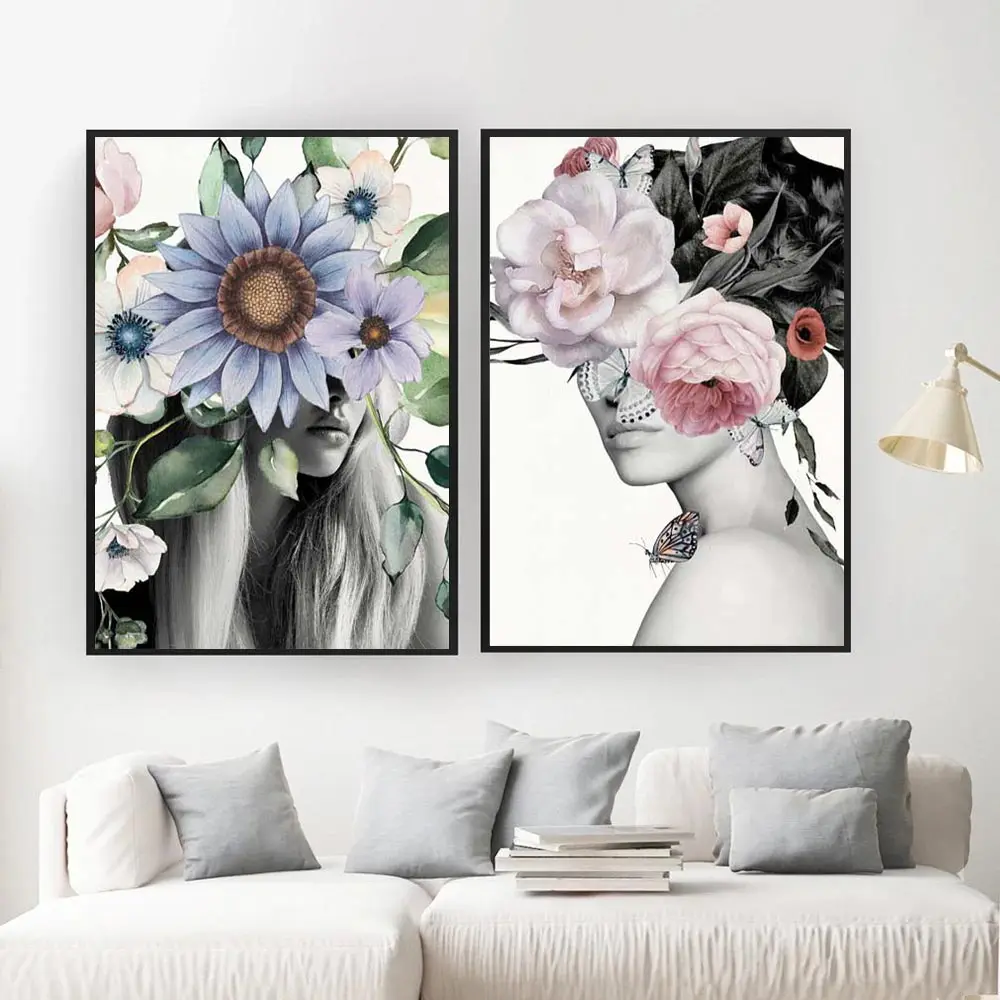 Постер в скандинавском стиле с изображением головы Женщины цветка бабочки художественный принт модная сексуальная женская Картина на холсте Современные картины гостиная домашний декор