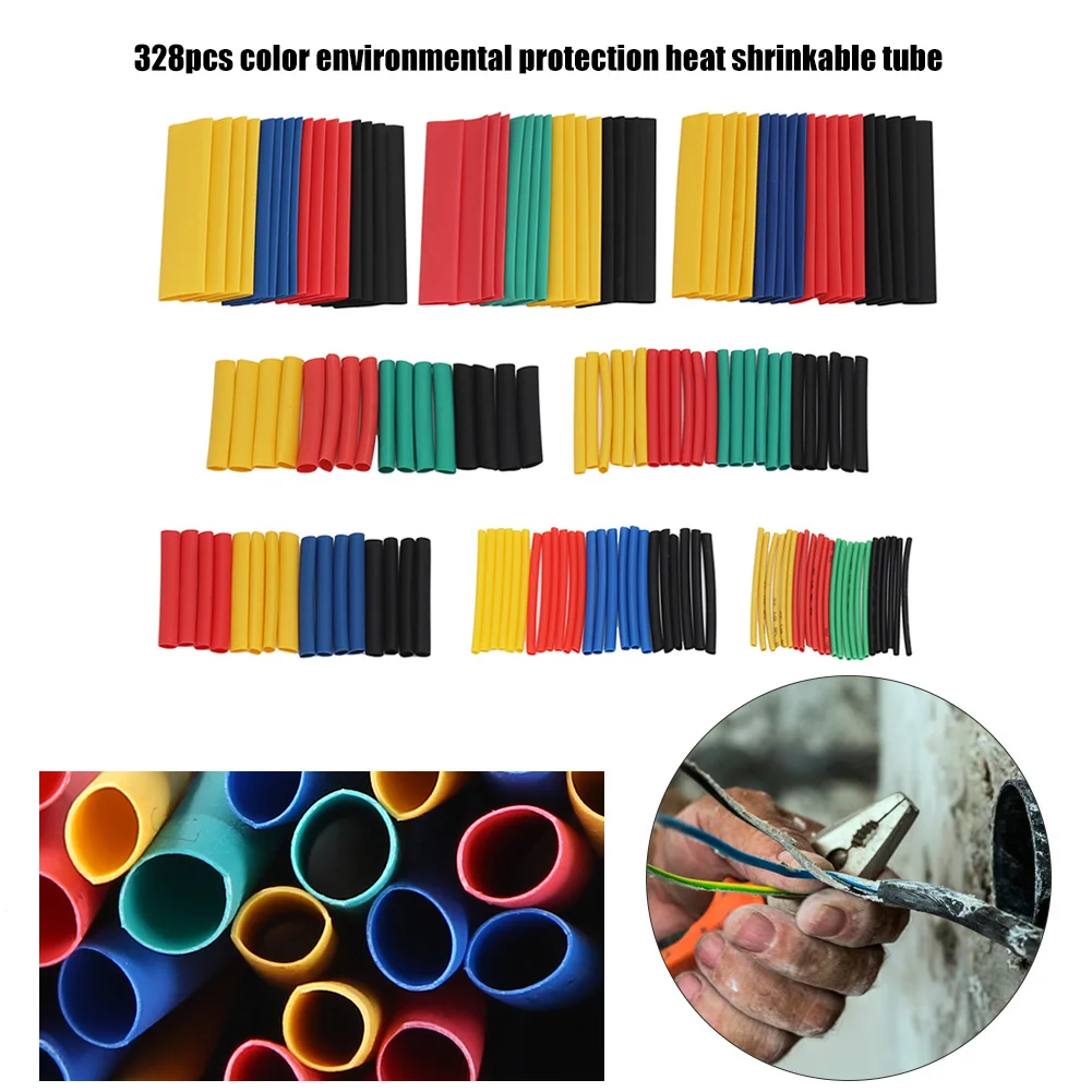 Комплект термоусадочной трубки для упаковки, термоусадочные трубки 328 шт., термоусадочные трубки, изоляционные трубки для проводов в ассортименте